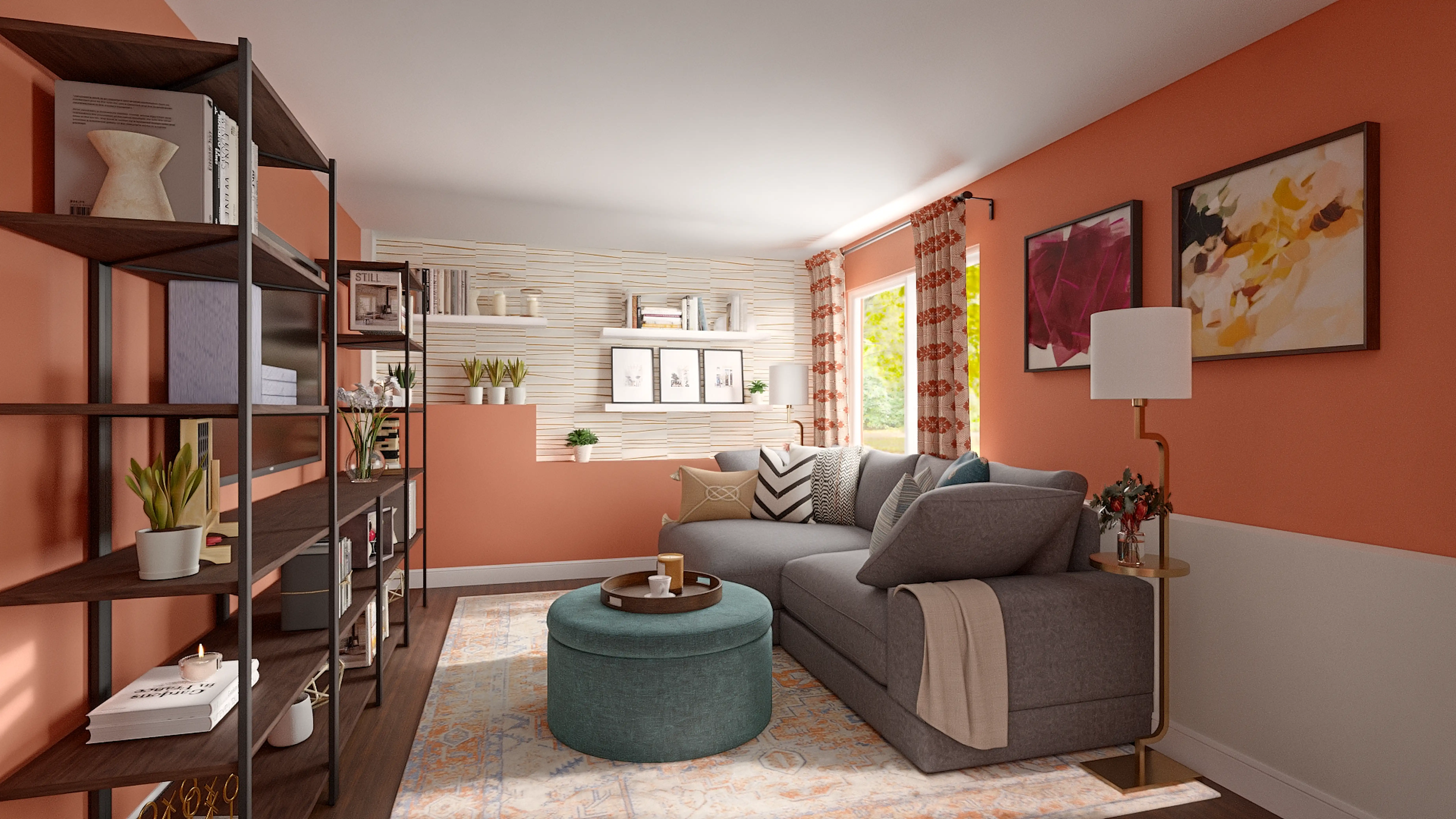 For this Living Room, Michelle selected wall shelves, ledges, and sectionals from Burrow and Moes Home Collection. Discover Furniture design inspiration on Havenly.