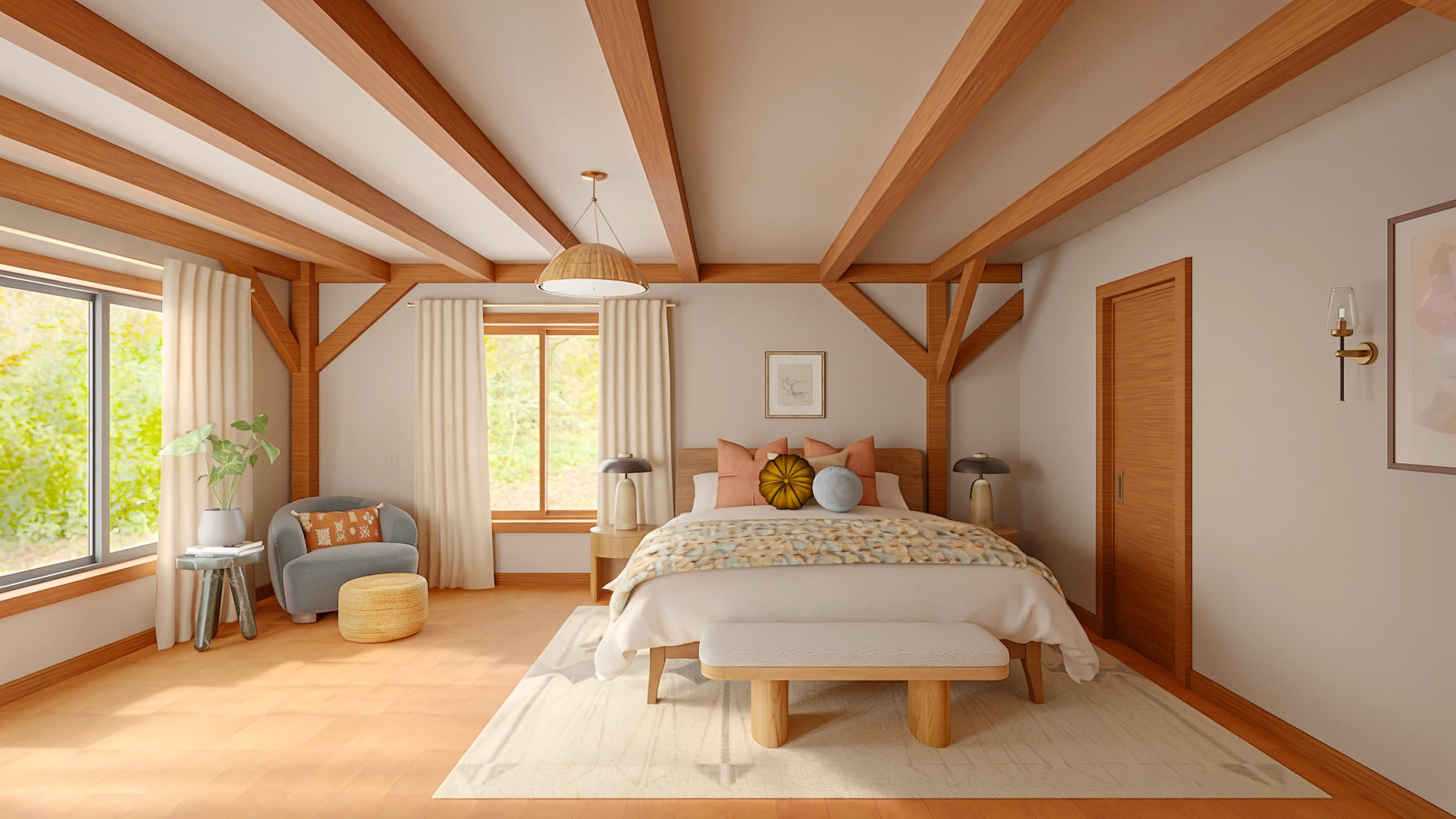 To brighten the design, Organic Modern wall light fixtures were added to the room. Discover Lighting design inspiration on Havenly.
