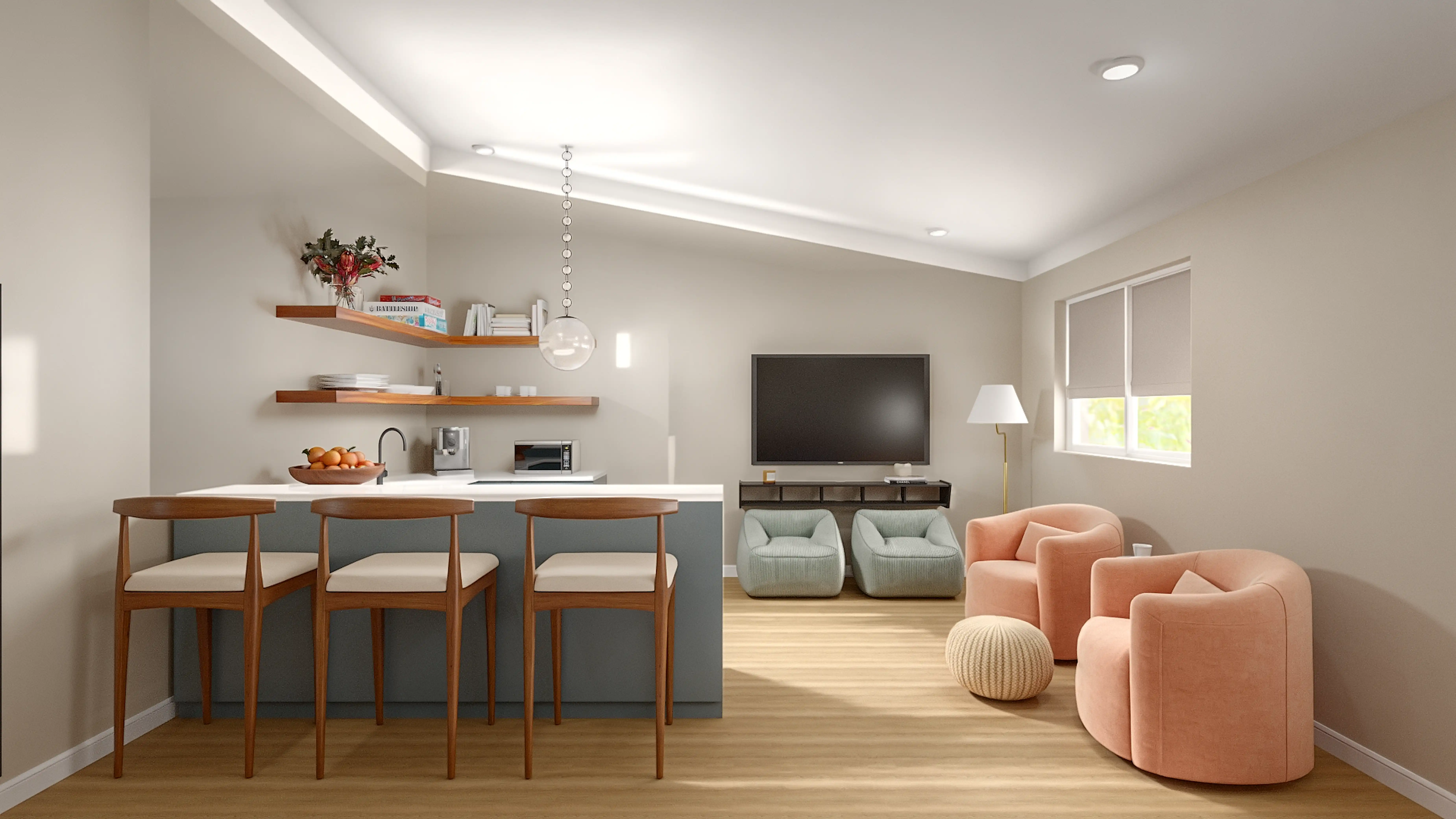 To brighten the design, California Cool lamps and ceiling light fixtures were added to the room. Discover Lighting design inspiration on Havenly.