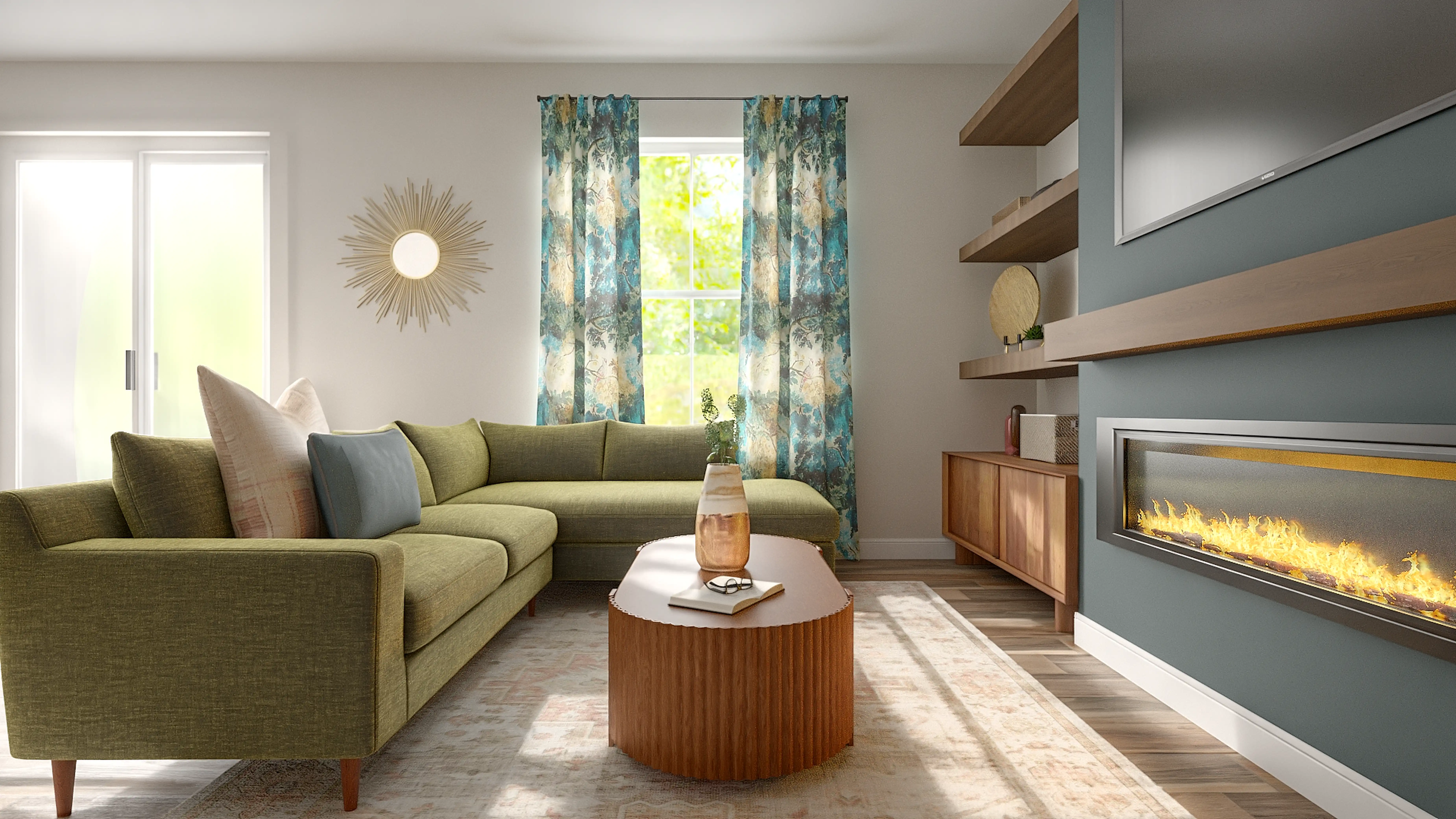 To brighten the design, modern ceiling light fixtures and lamps were added to the room. Discover Lighting design inspiration on Havenly.