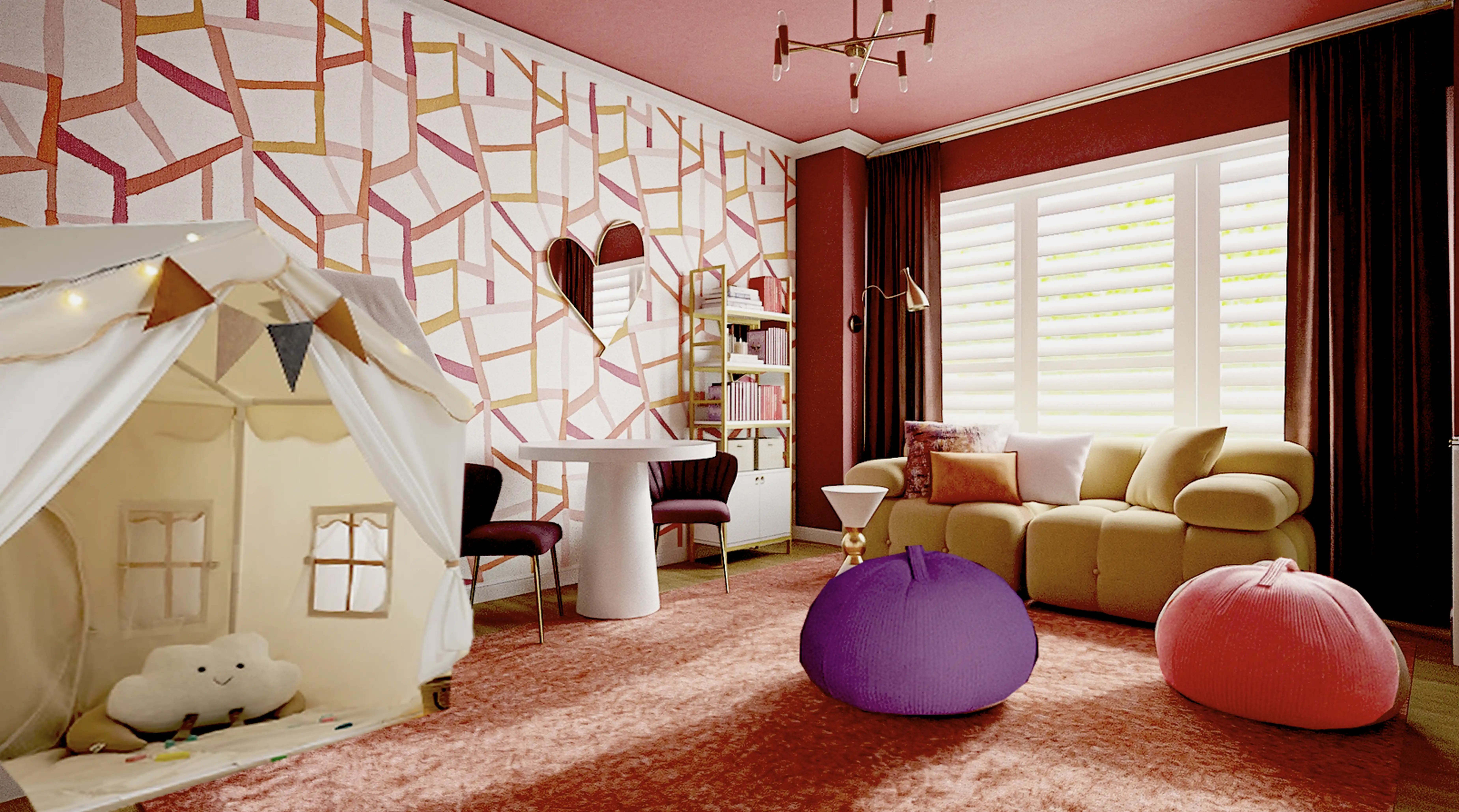 To brighten the design, modern wall light fixtures and chandeliers were added to the room. Discover Lighting design inspiration on Havenly.