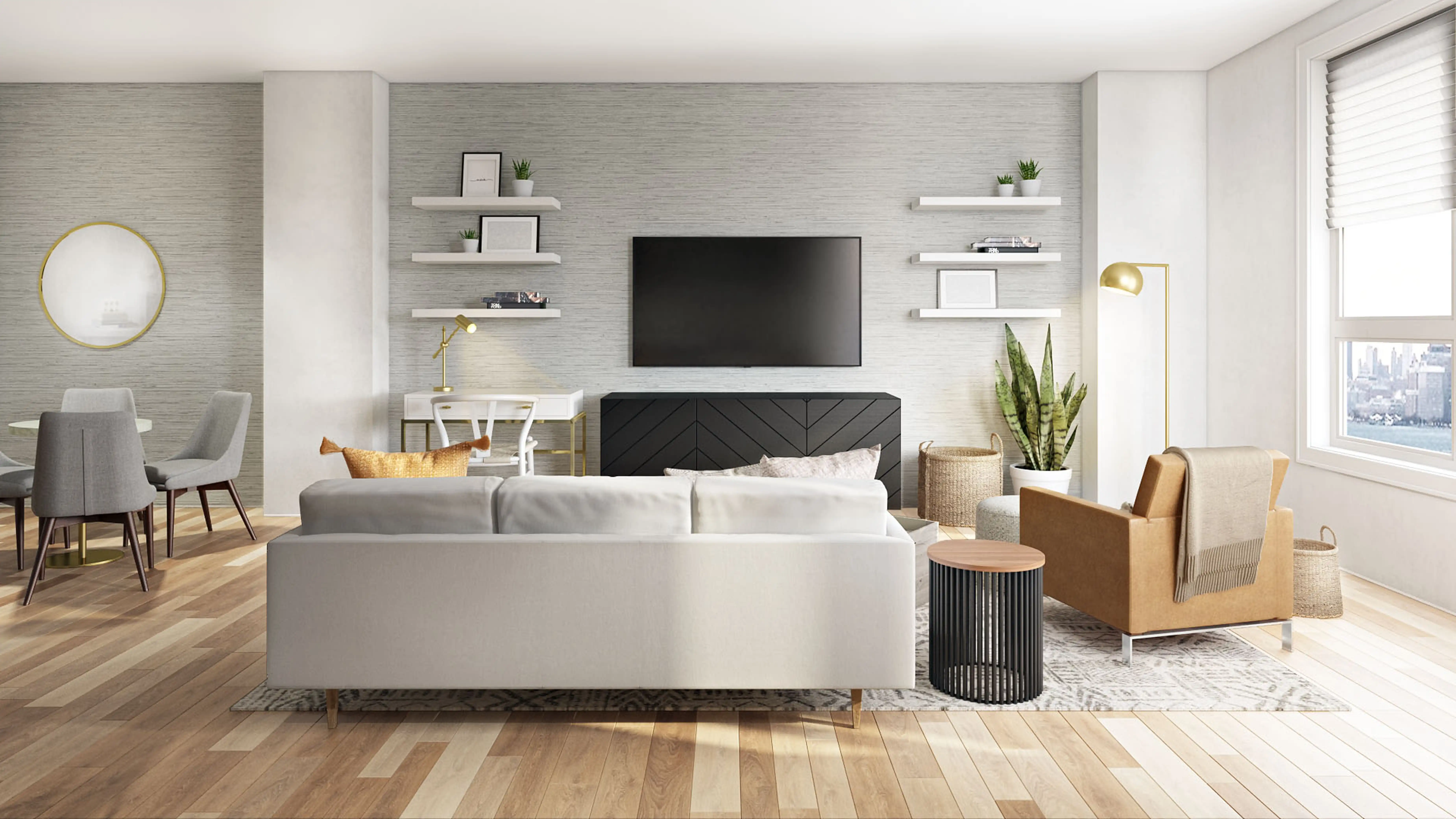 For this Living Room, Jessie selected accent tables and poufs from Home Depot and Article. Discover Furniture design inspiration on Havenly.