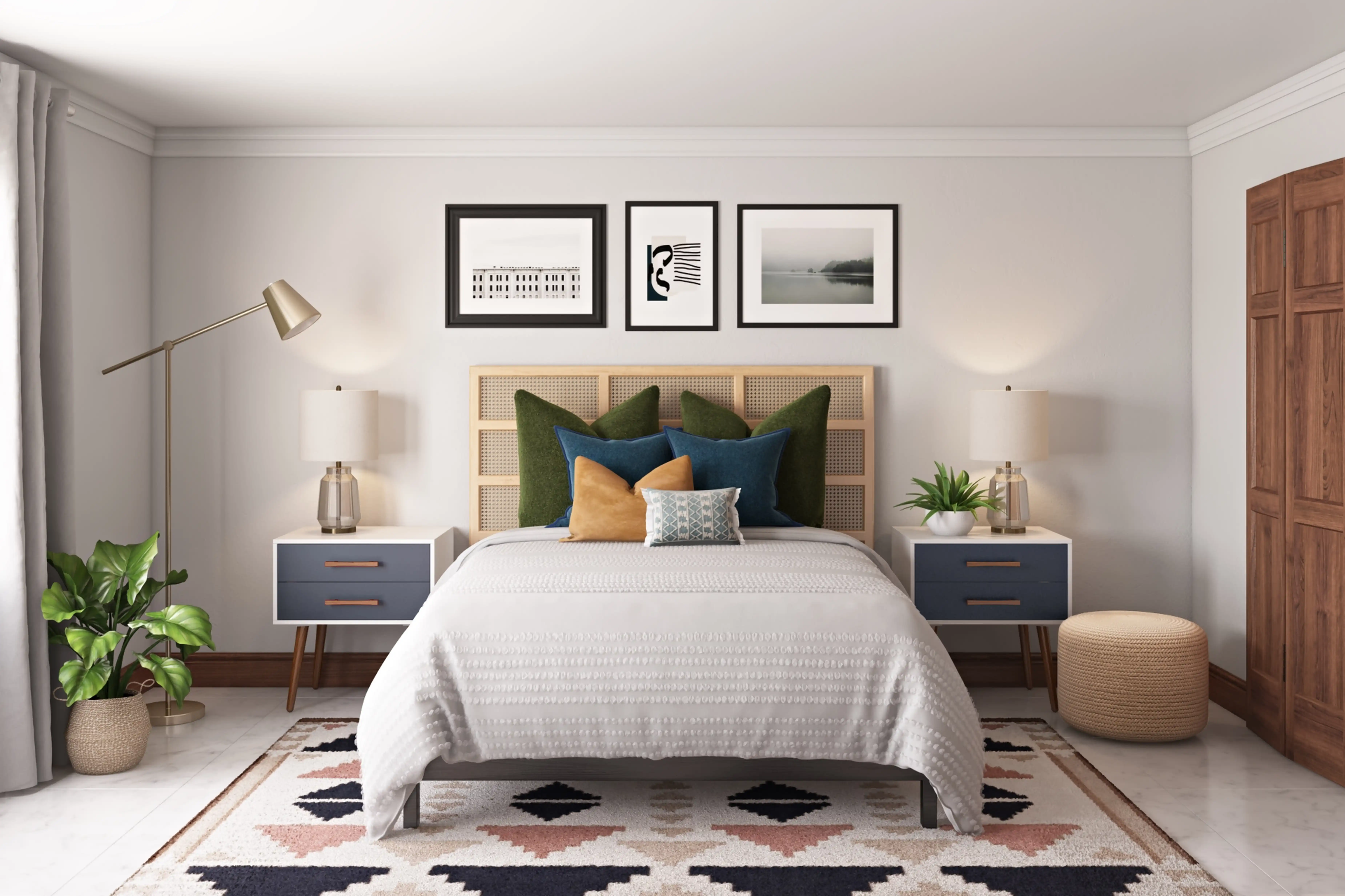 For this Bedroom, Julie selected nightstands, headboards, and footboards from Home Depot and CB2. Discover Furniture design inspiration on Havenly.