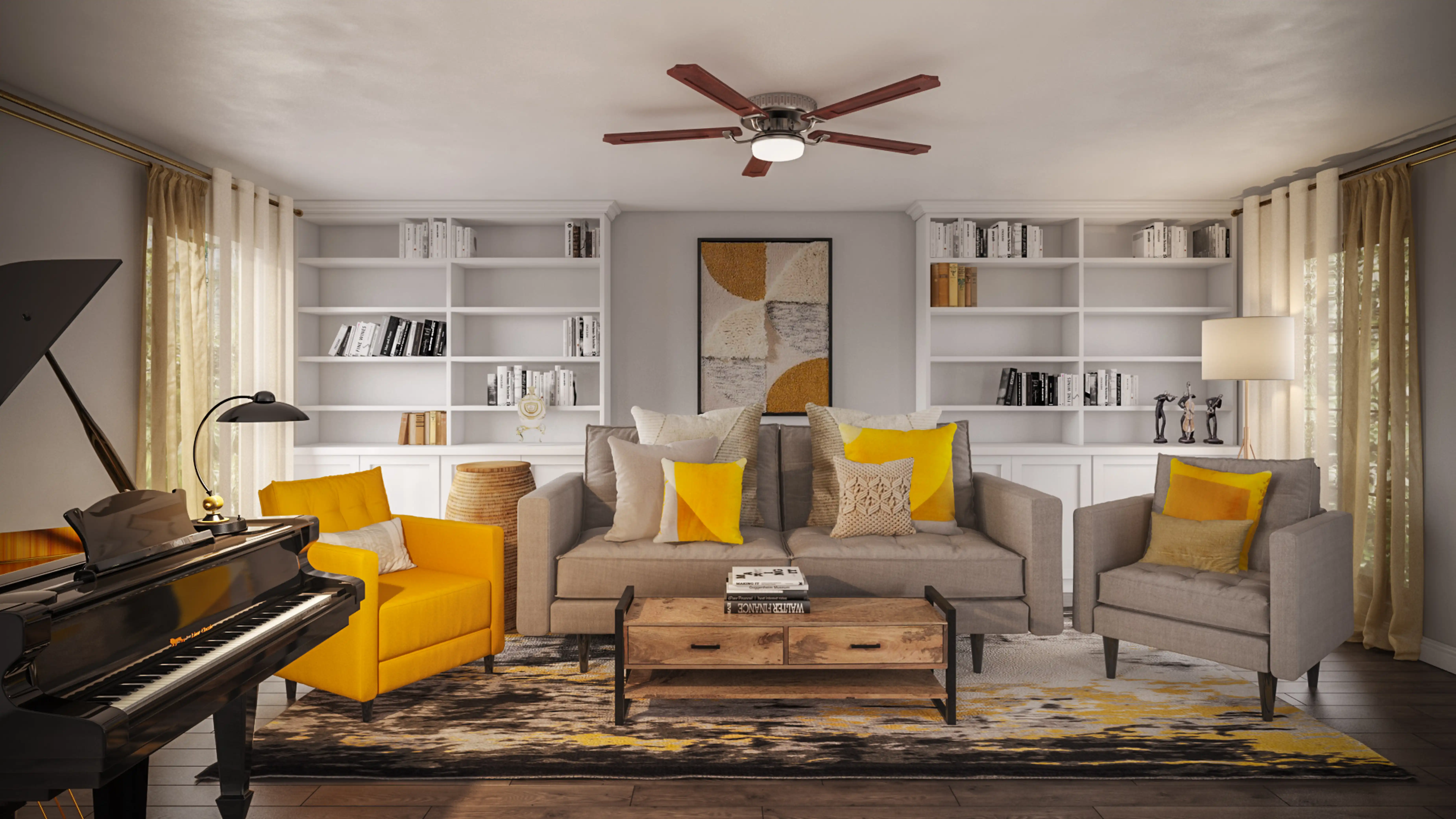 No room is complete without throw pillows, curtains, and drapes! Mixing up cotton and 100% polyester with mustard and bright yellow helps to add the finishing touches to the Living Room. Discover Decor & Pillow design inspiration on Havenly.