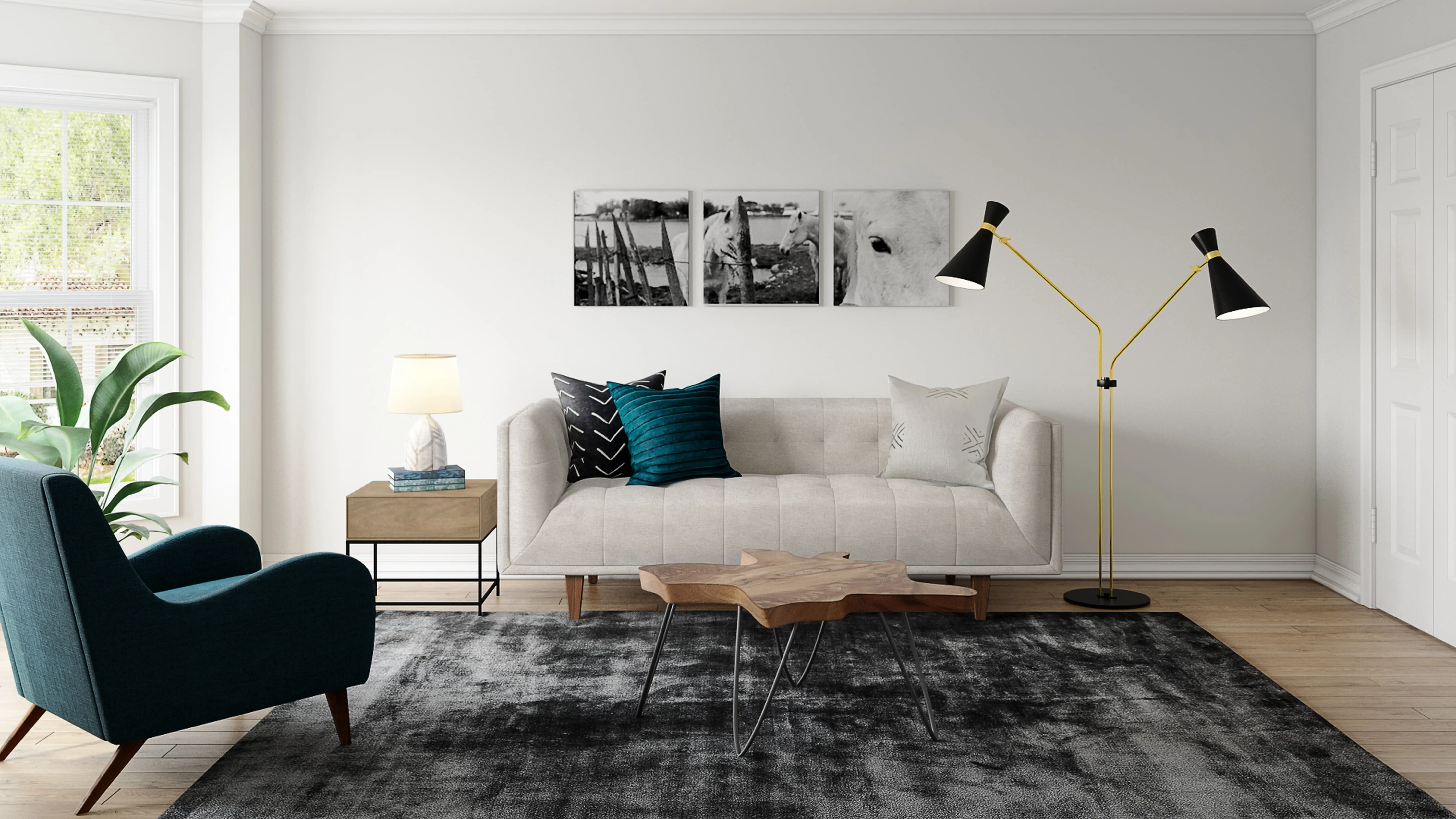 To brighten the design, Midcentury Modern lamps and lamp shades were added to the room. Discover Lighting design inspiration on Havenly.