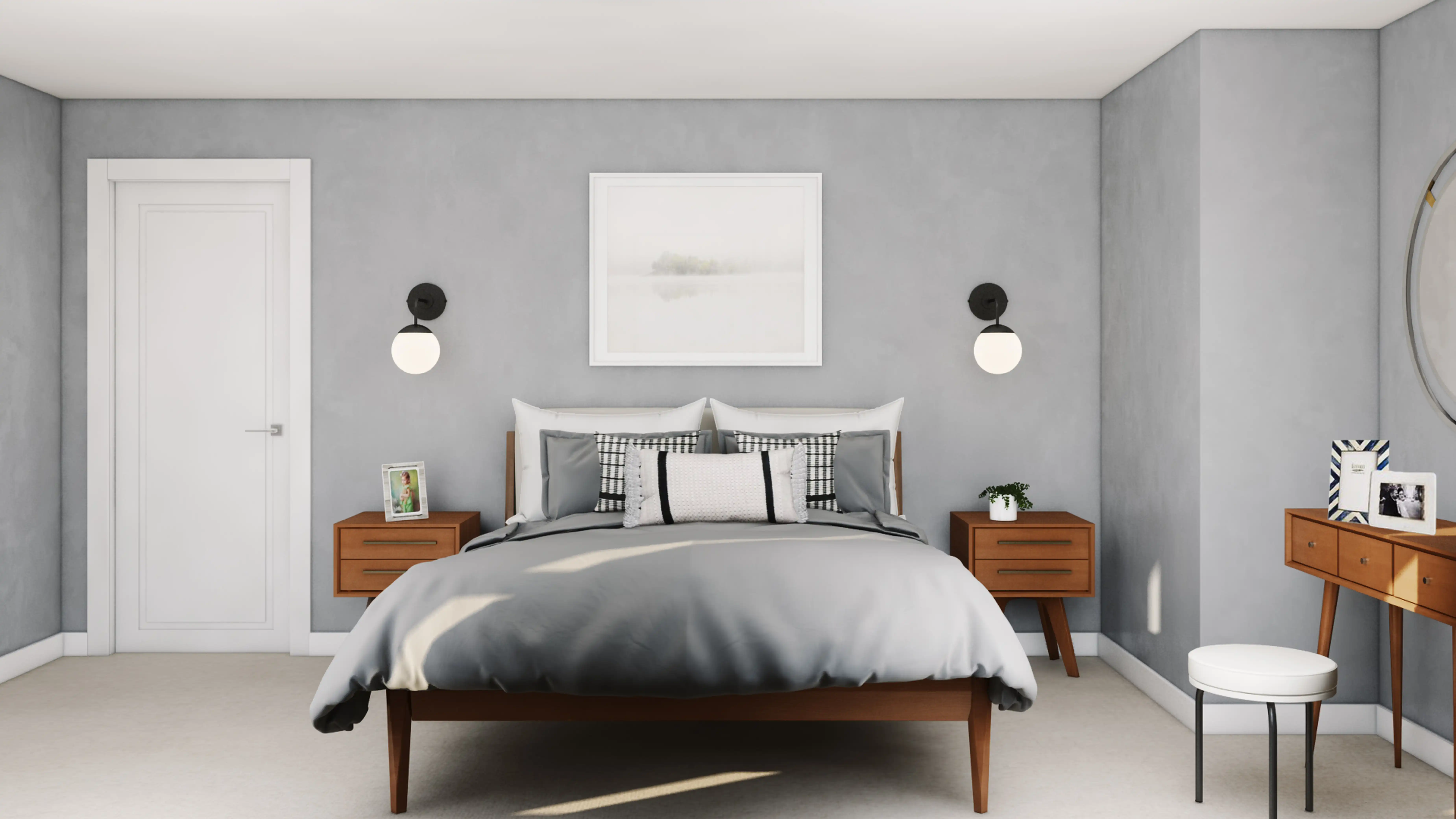 For this Bedroom, Kelly selected nightstands, table, and bar stools from West Elm and AllModern. Discover Furniture design inspiration on Havenly.