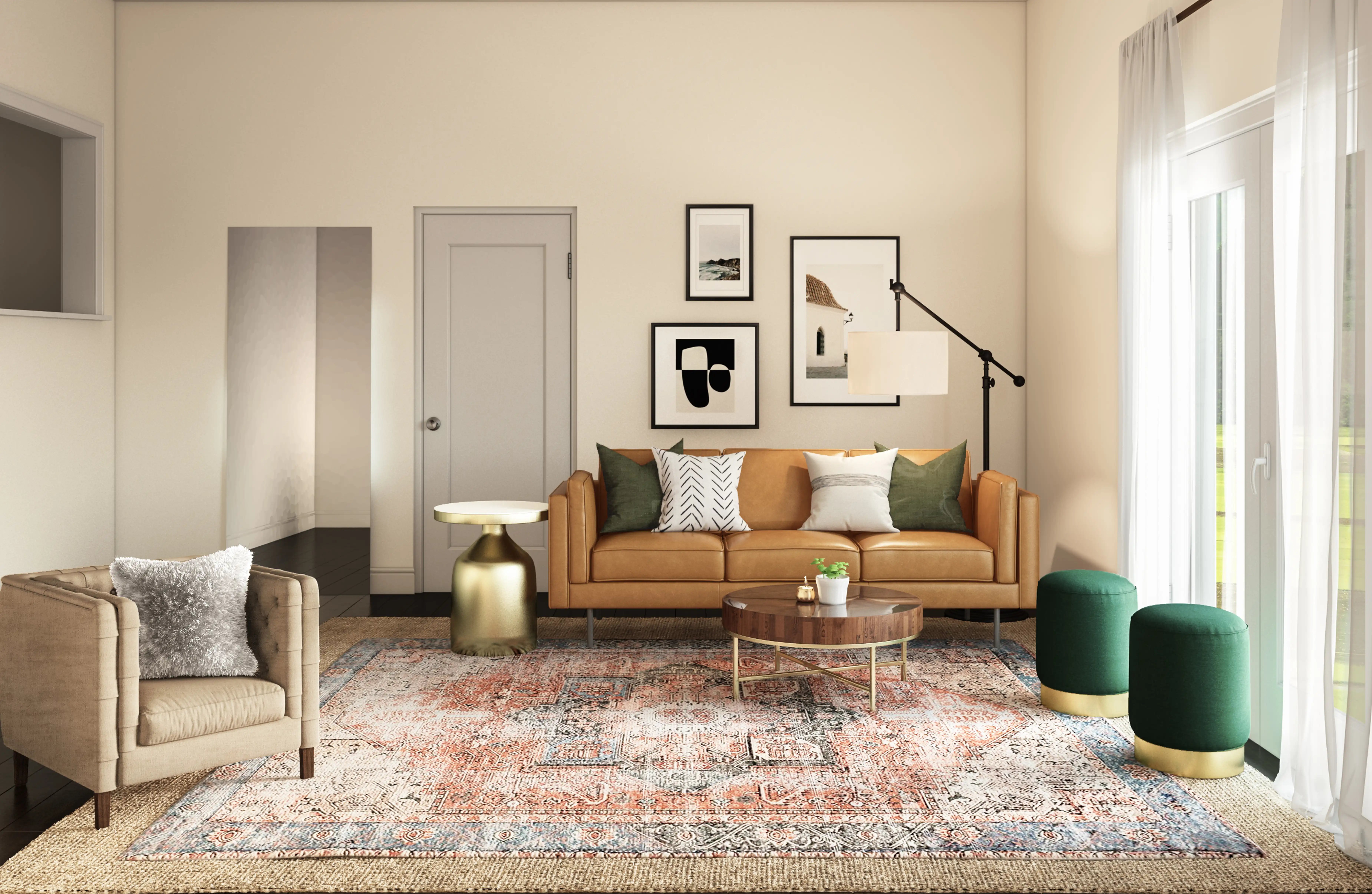 The rugs in this space from Jaipur Living and Surya help add a variety of colors to the room. Discover Rug design inspiration on Havenly.
