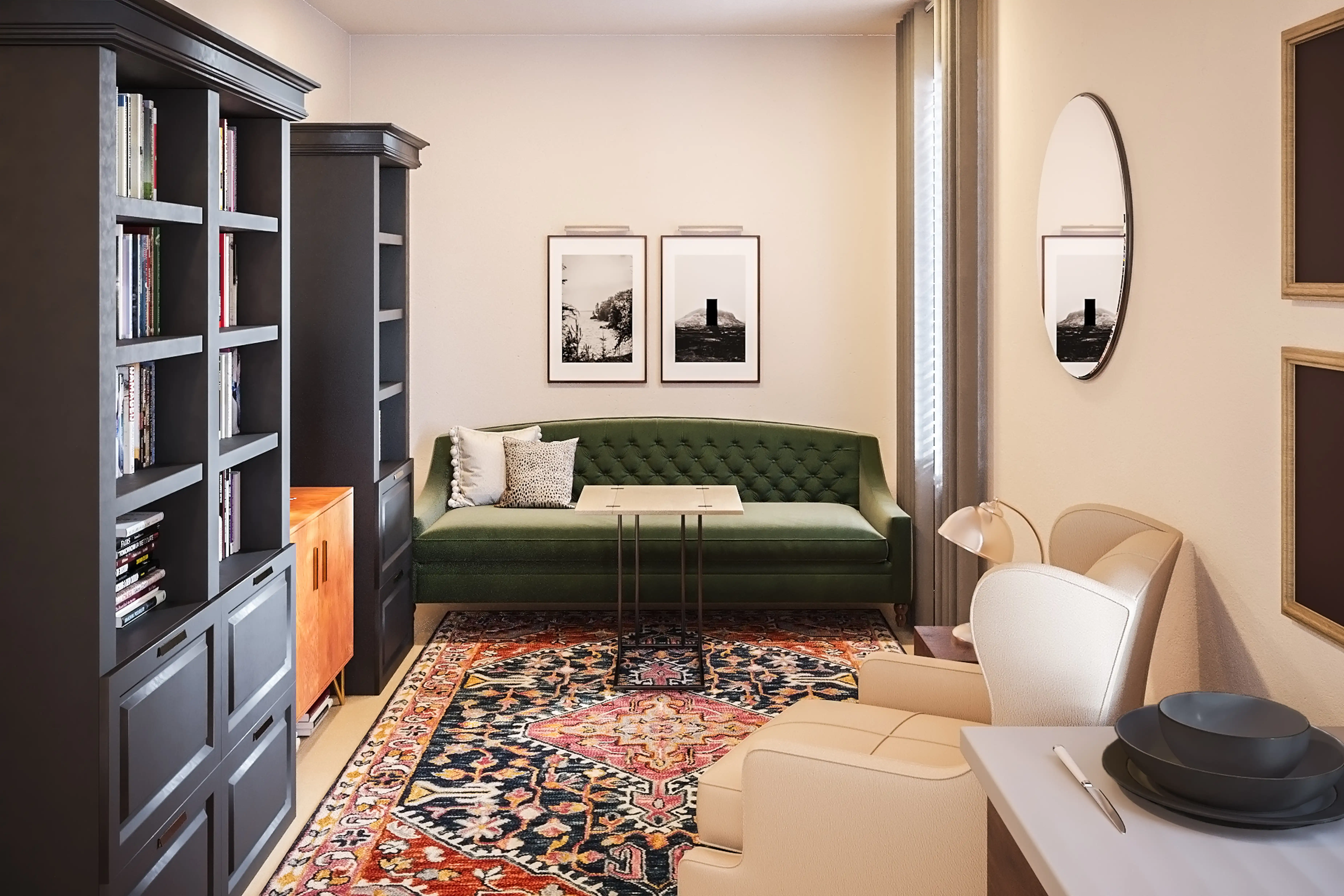 The rug in this space from Loloi Rugs helps add a variety of colors to the room. Discover Rug design inspiration on Havenly.