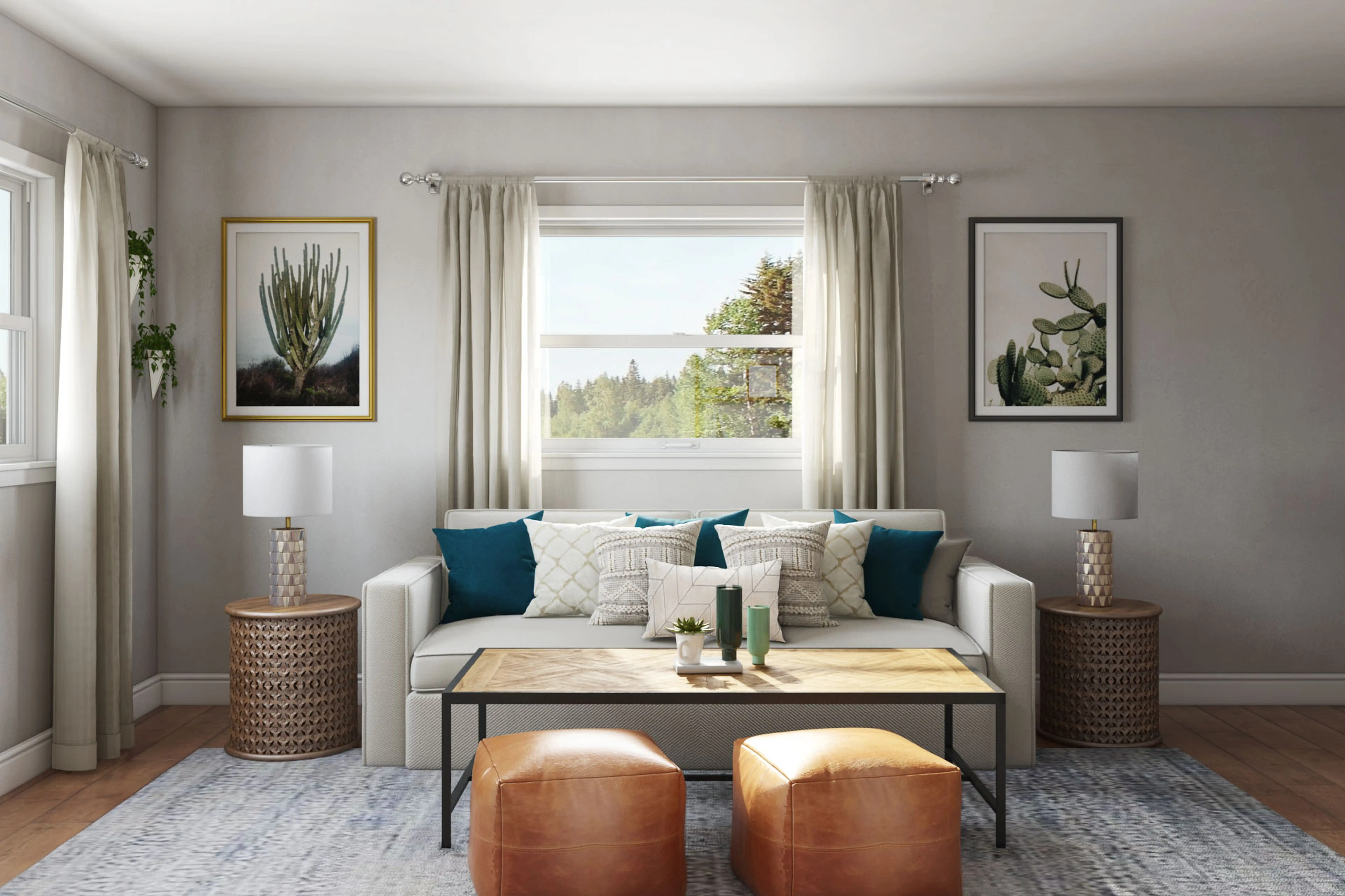 For this room, Haley selected poufs and end tables from CB2 and West Elm. Discover Furniture design inspiration on Havenly.