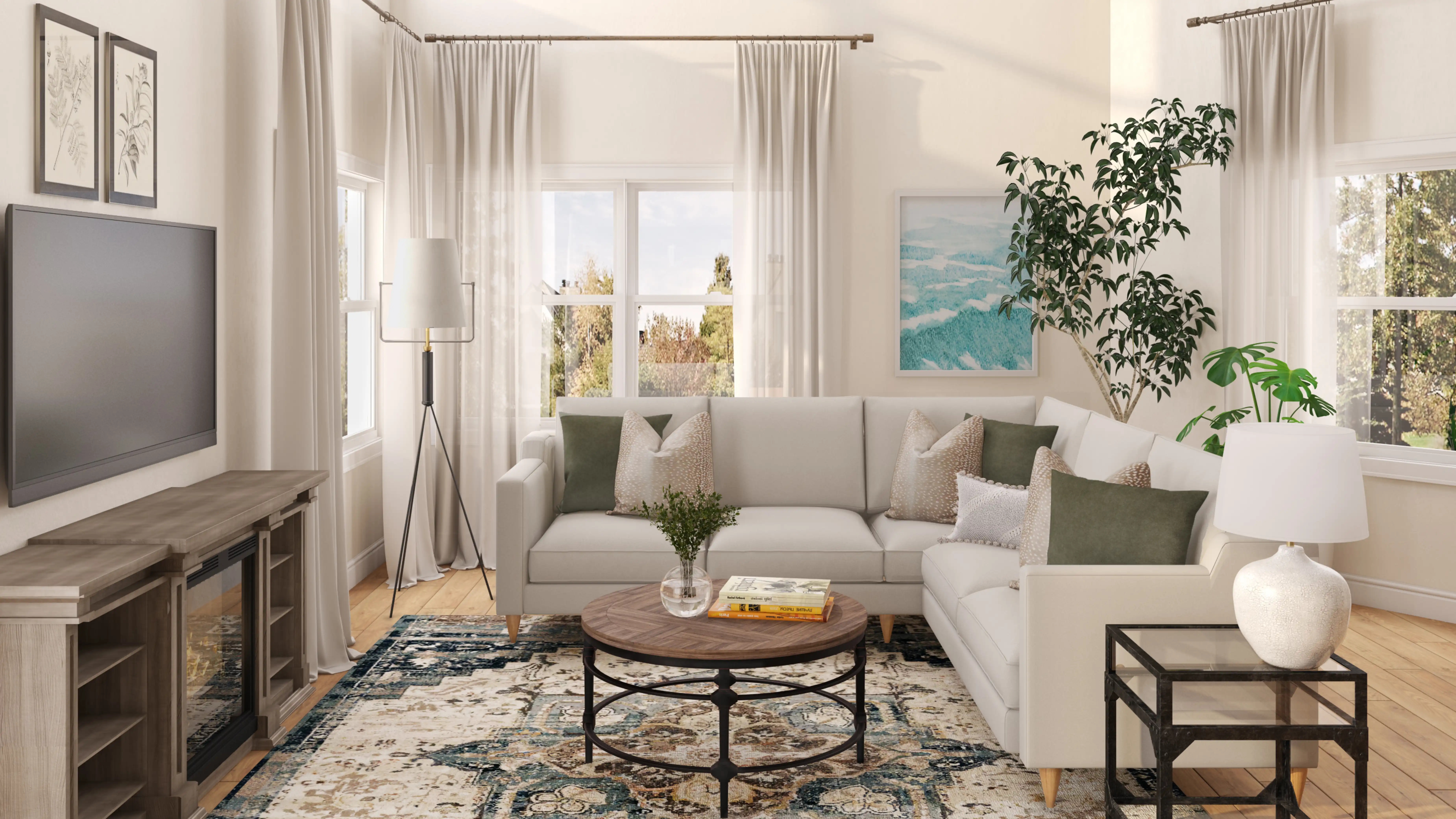 The rugs in this space from Home Depot and Wayfair help add a variety of colors to the room. Discover Rug design inspiration on Havenly.