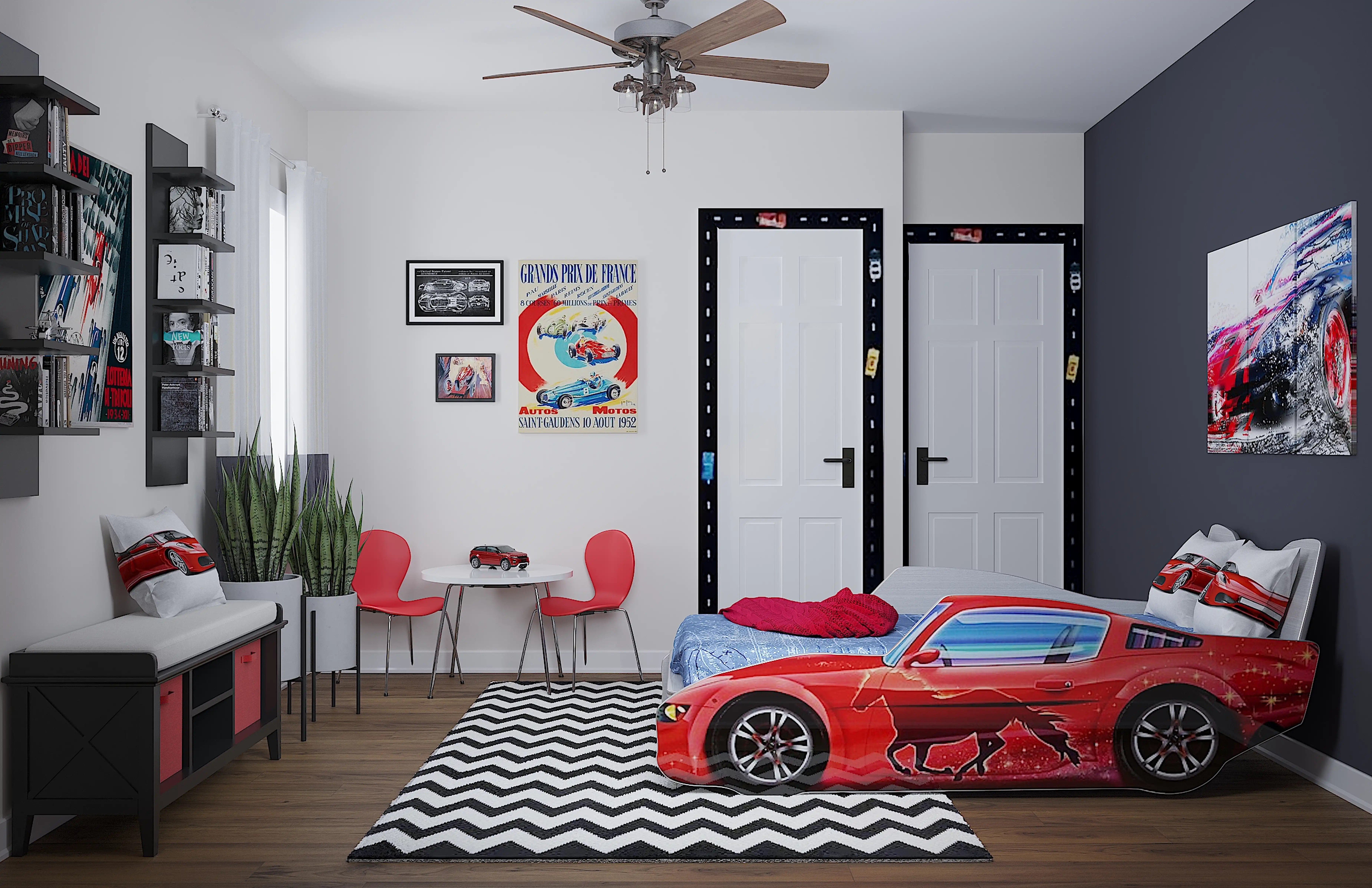 No room is complete without posters, prints, visual artwork, and throw pillows! Mixing up canvas and polyester/polyester blend with red and black helps to add the finishing touches to the Bedroom. Discover Decor & Pillow design inspiration on Havenly.