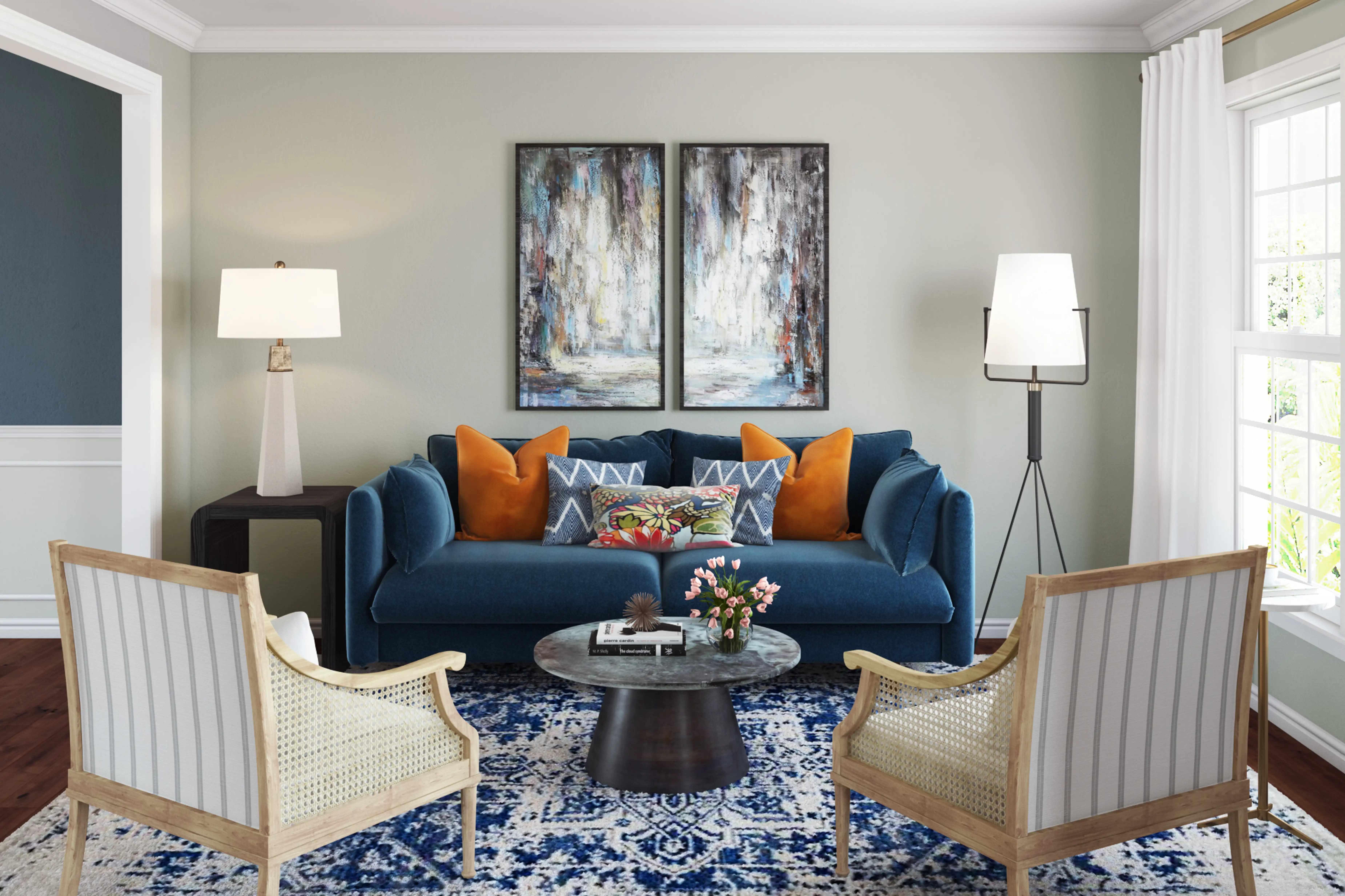For this Living Room, Annie selected sofas and accent tables from Article and West Elm. Discover Furniture design inspiration on Havenly.