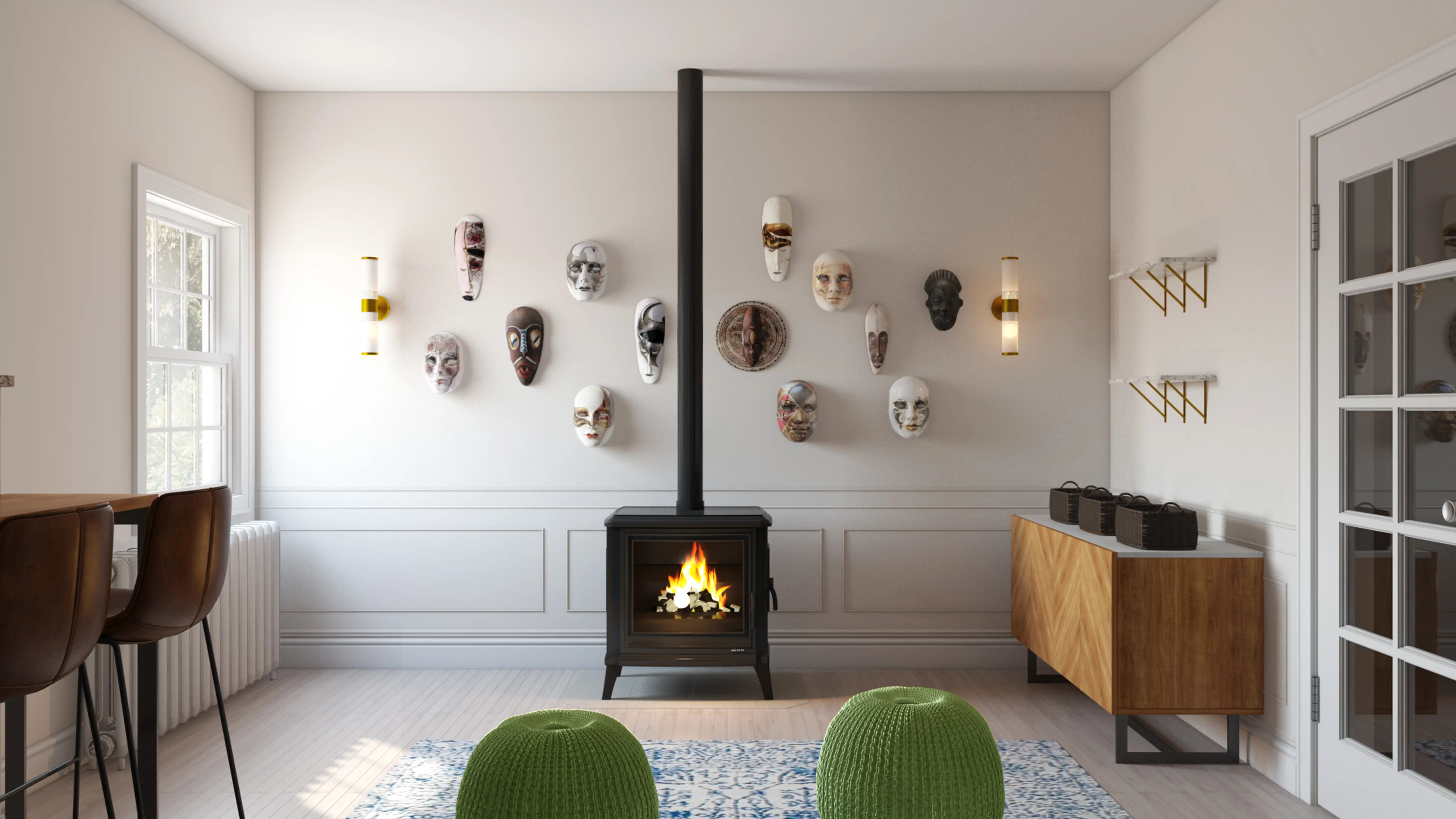 For this Living Room, Erin selected end tables, table, and bar stools from Wayfair and West Elm. Discover Furniture design inspiration on Havenly.