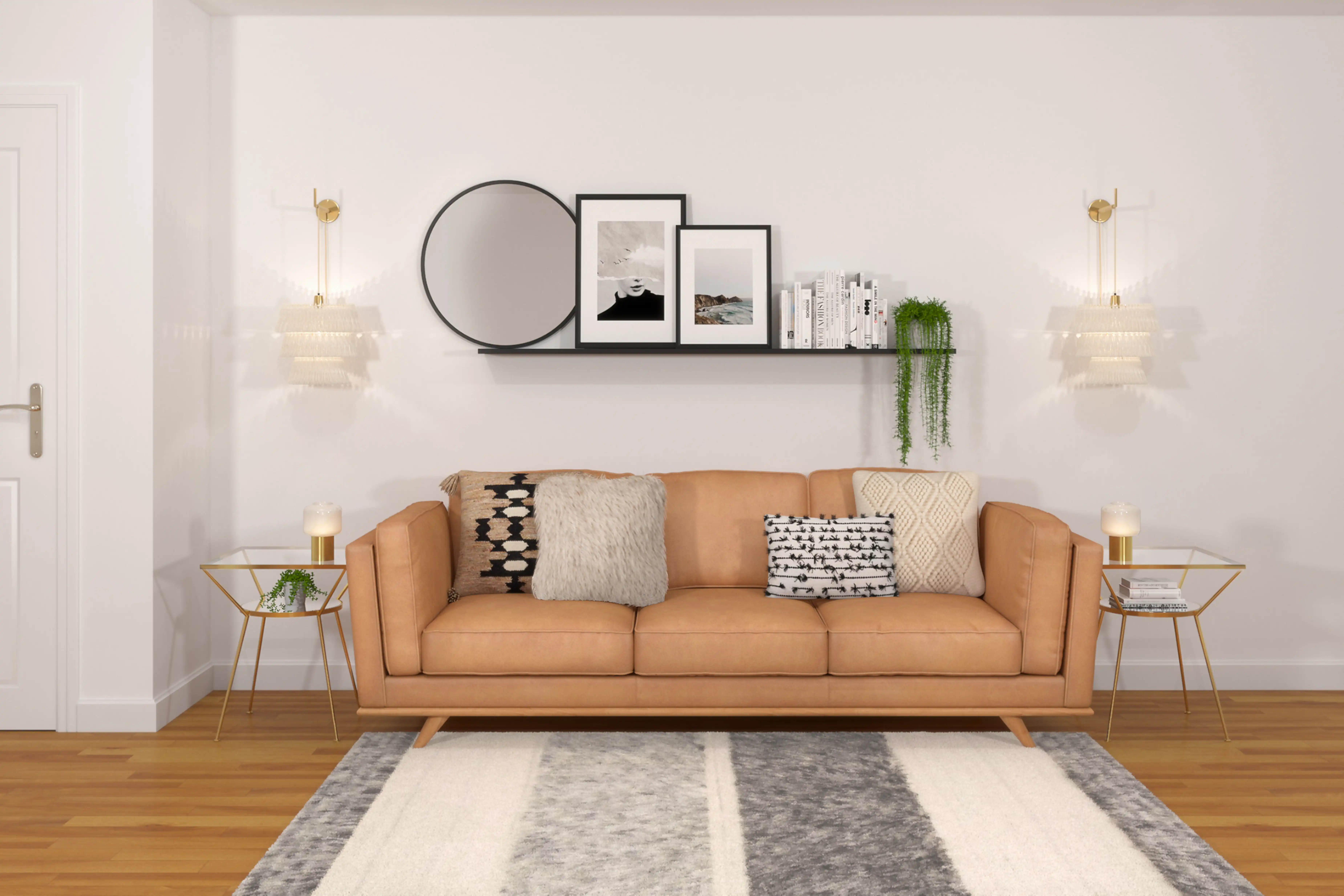 For this Living Room, Daniela selected wall shelves, ledges, and nightstands from Home Depot and Anthropologie. Discover Furniture design inspiration on Havenly.