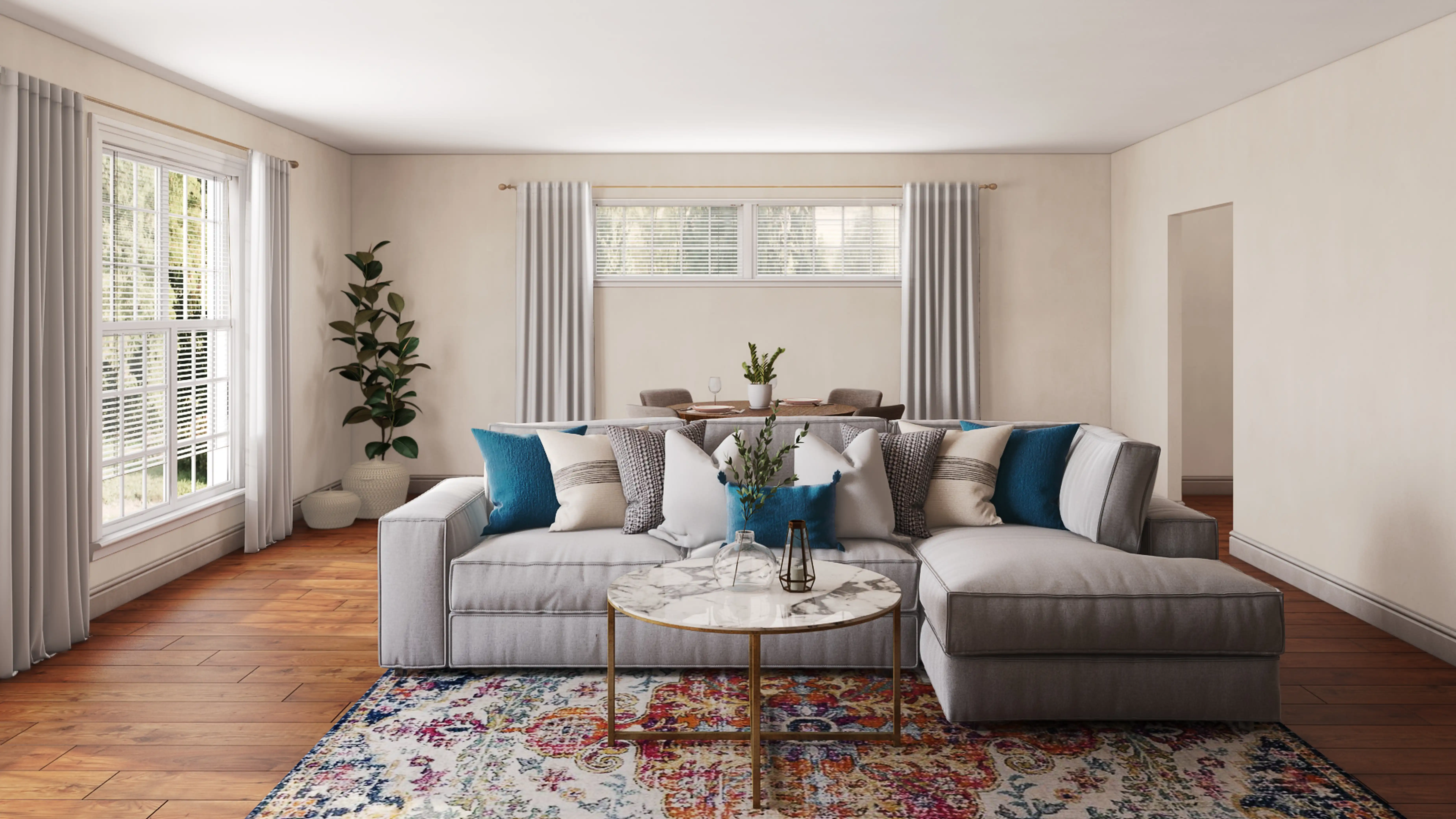 For this Living Room, Laura selected poufs and coffee tables from CB2 and Home Depot. Discover Furniture design inspiration on Havenly.