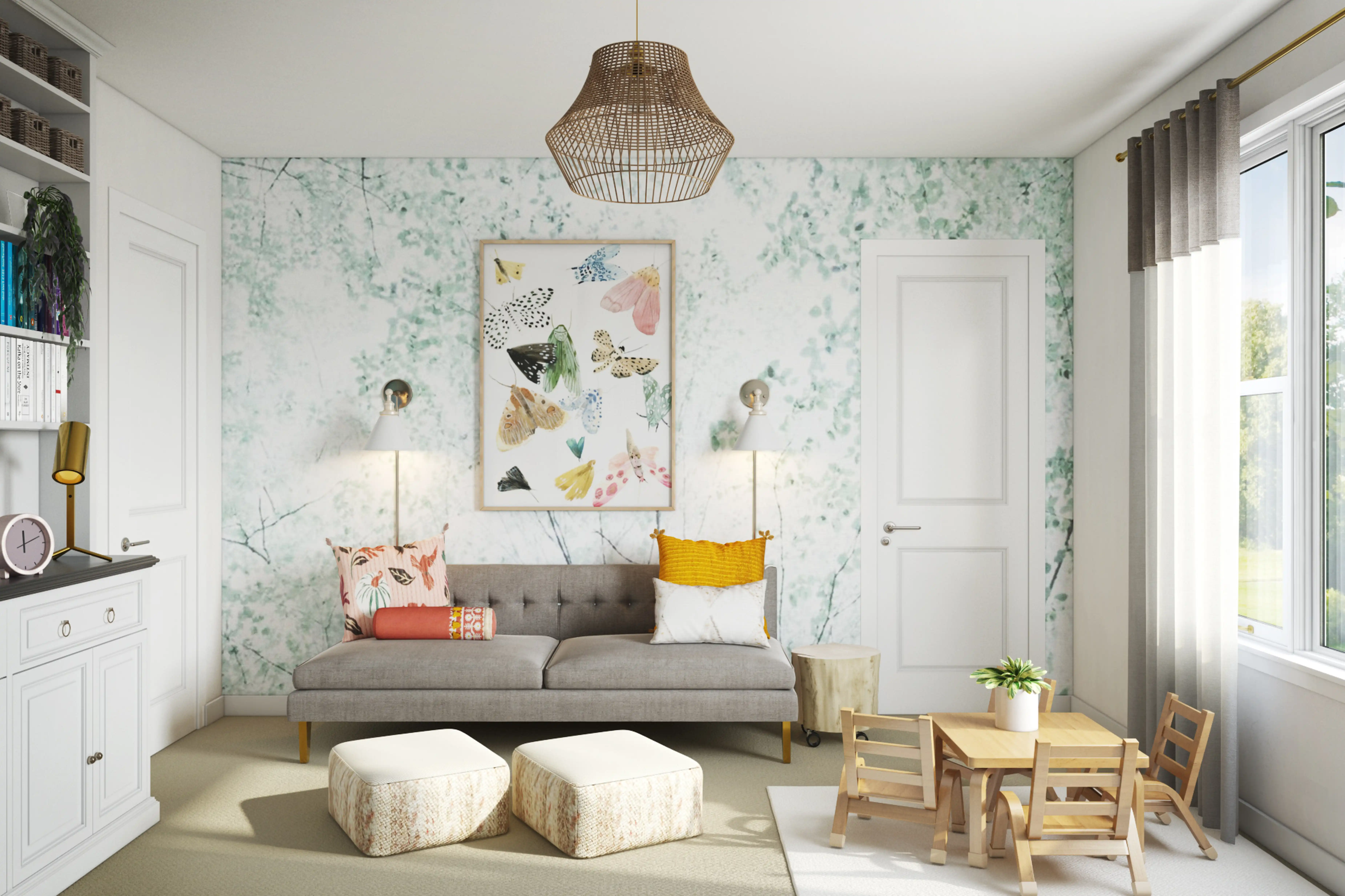 To brighten the design, Eclectic ceiling light fixtures and lamps were added to the room. Discover Lighting design inspiration on Havenly.
