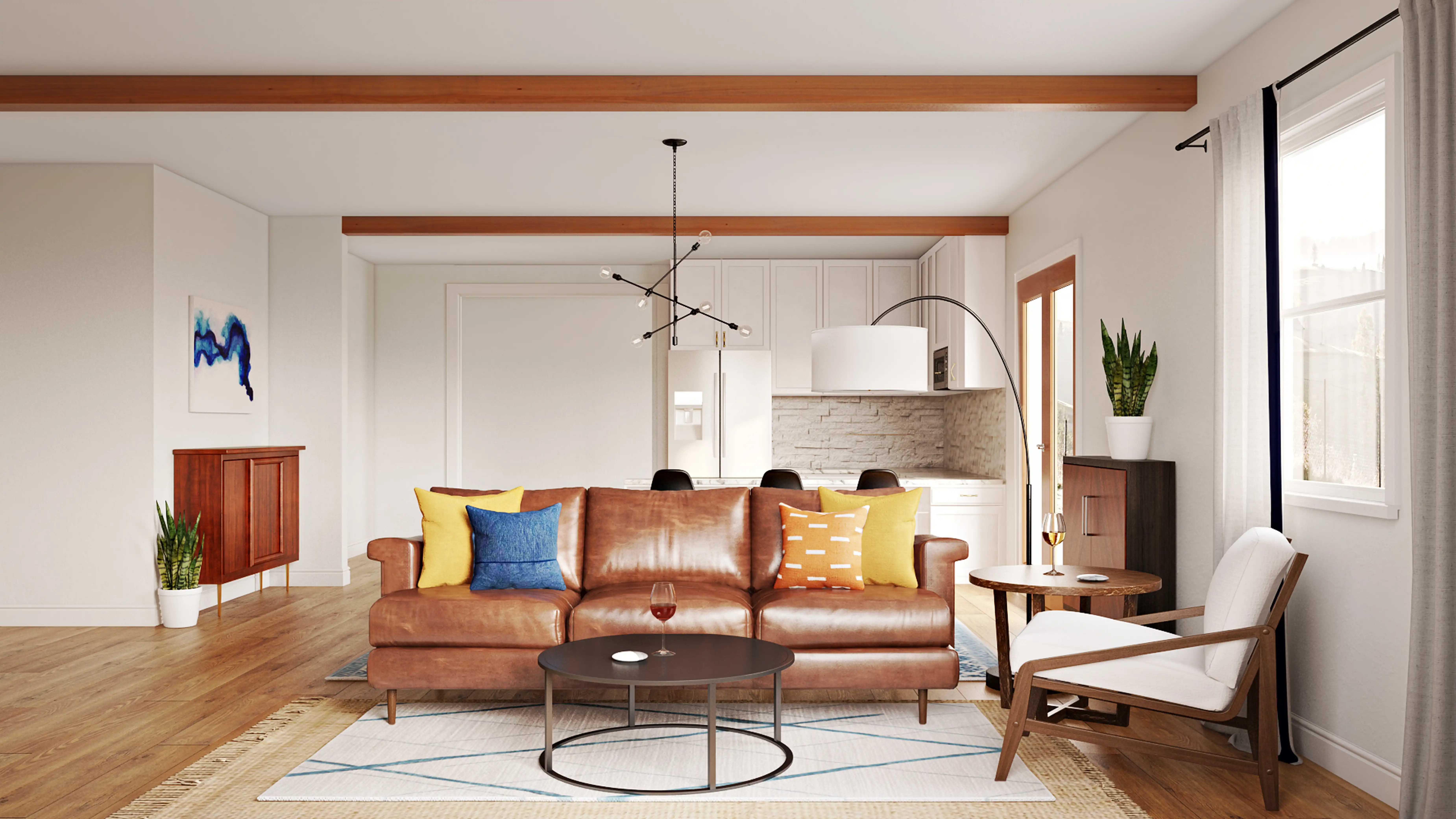 For this Living Room, Rebecca selected table, bar stools, and end tables from Wayfair and West Elm. Discover Furniture design inspiration on Havenly.