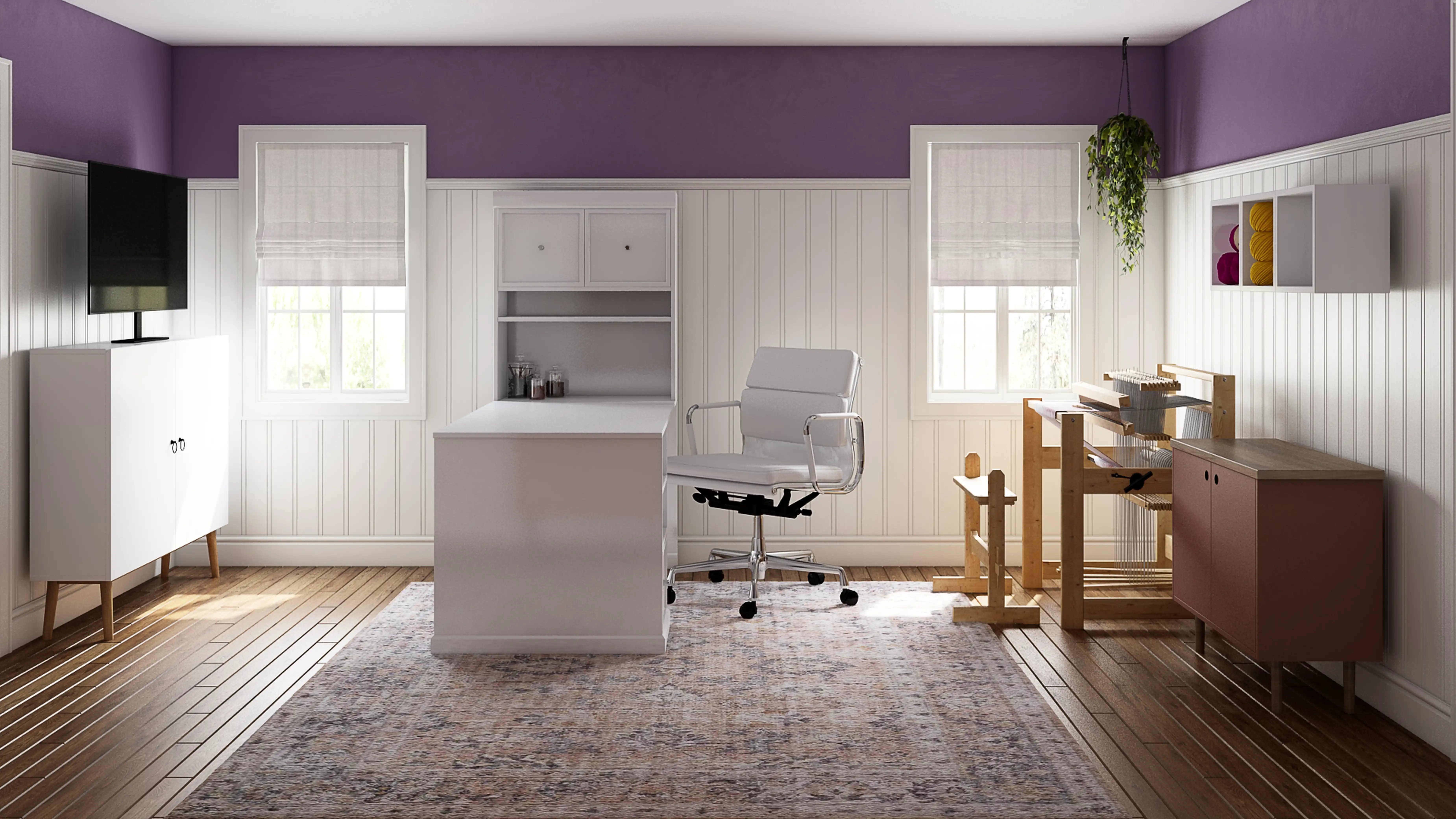 For this room, Laura selected office chairs, bookcases, and standing shelves from Wayfair. Discover Furniture design inspiration on Havenly.