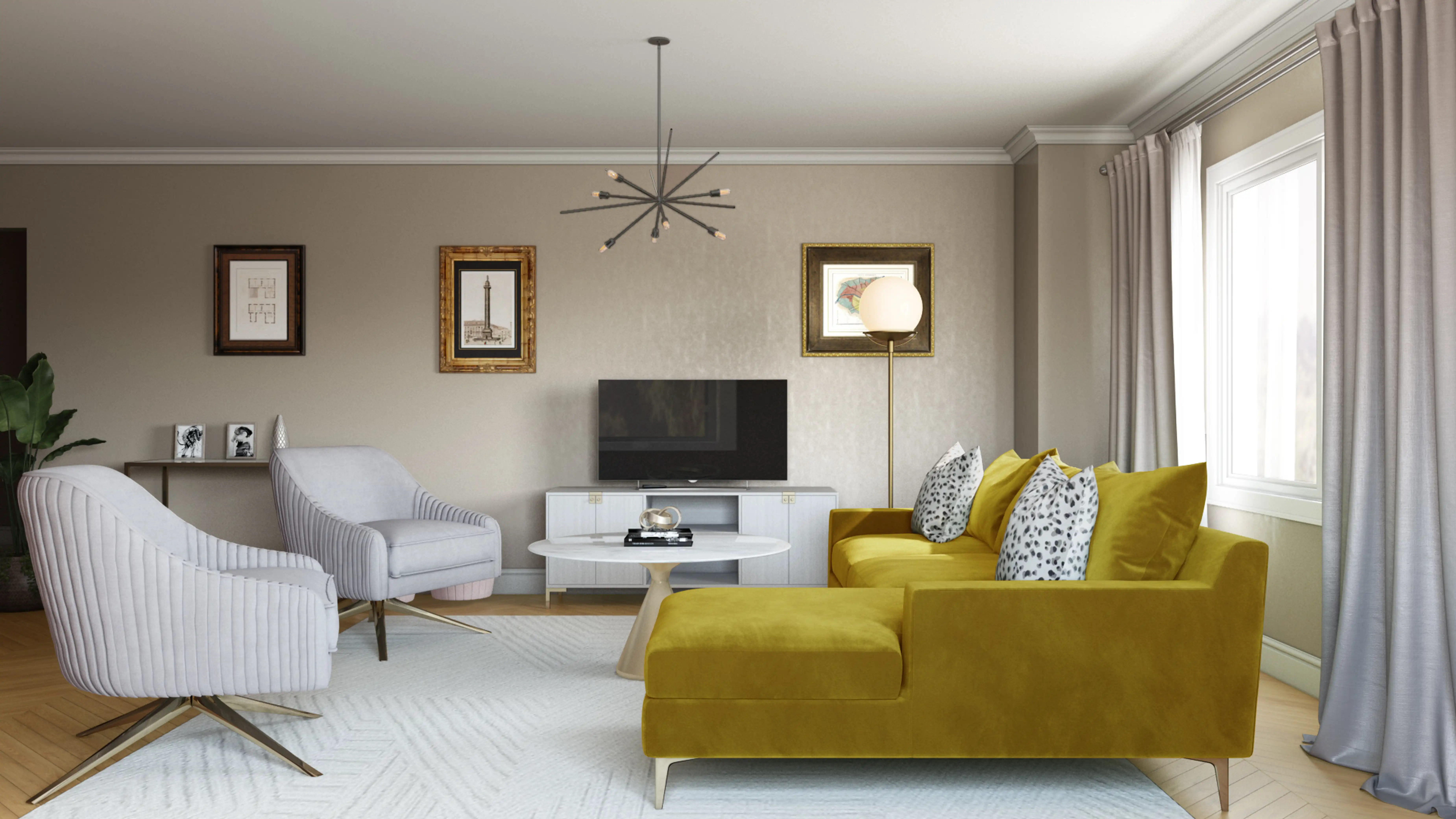 To brighten the design, Modern chandeliers and lamps were added to the room. Discover Lighting design inspiration on Havenly.