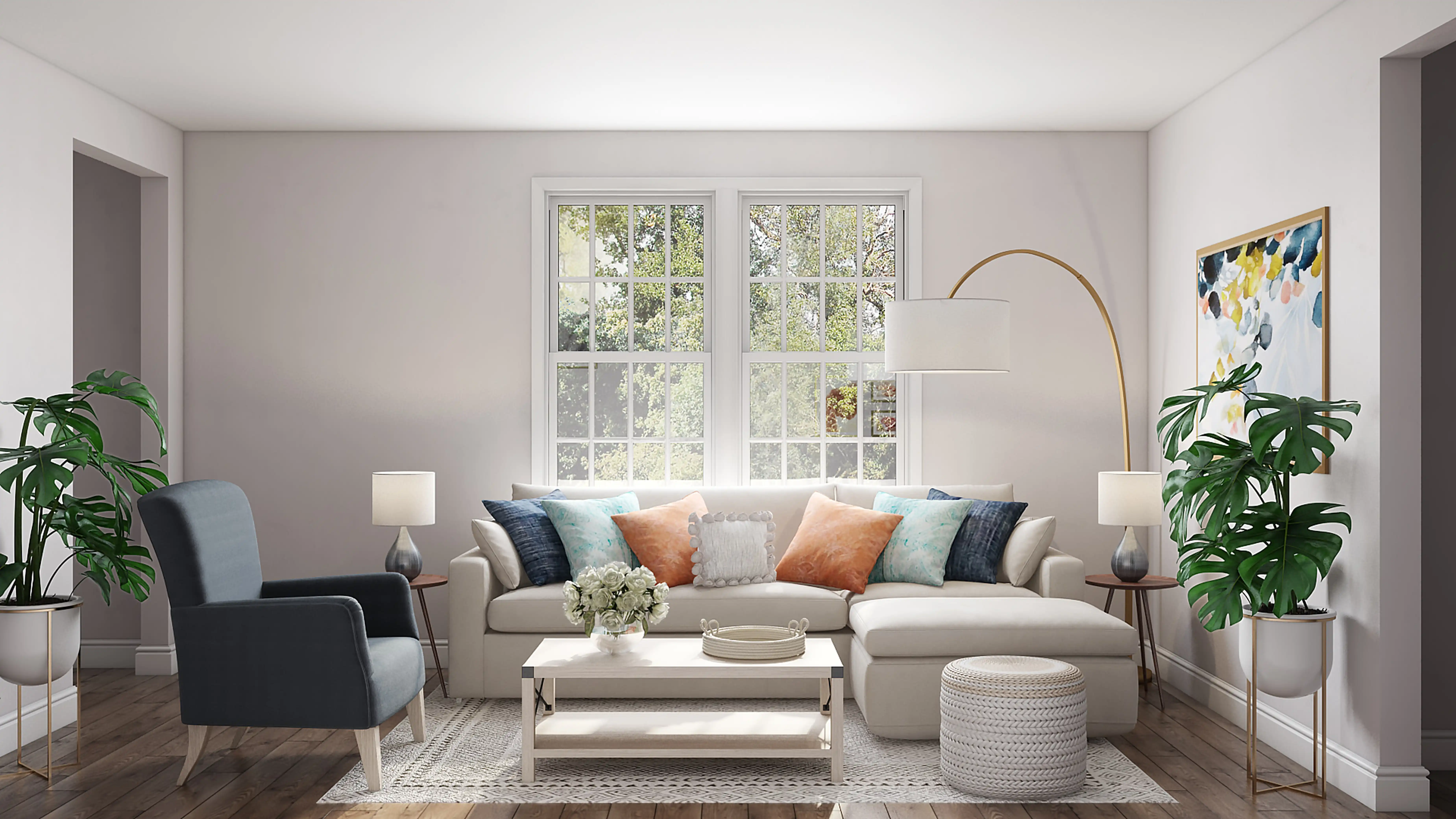 For this room, Ghianella selected end tables and coffee tables from Pottery Barn and Home Depot. Discover Furniture design inspiration on Havenly.