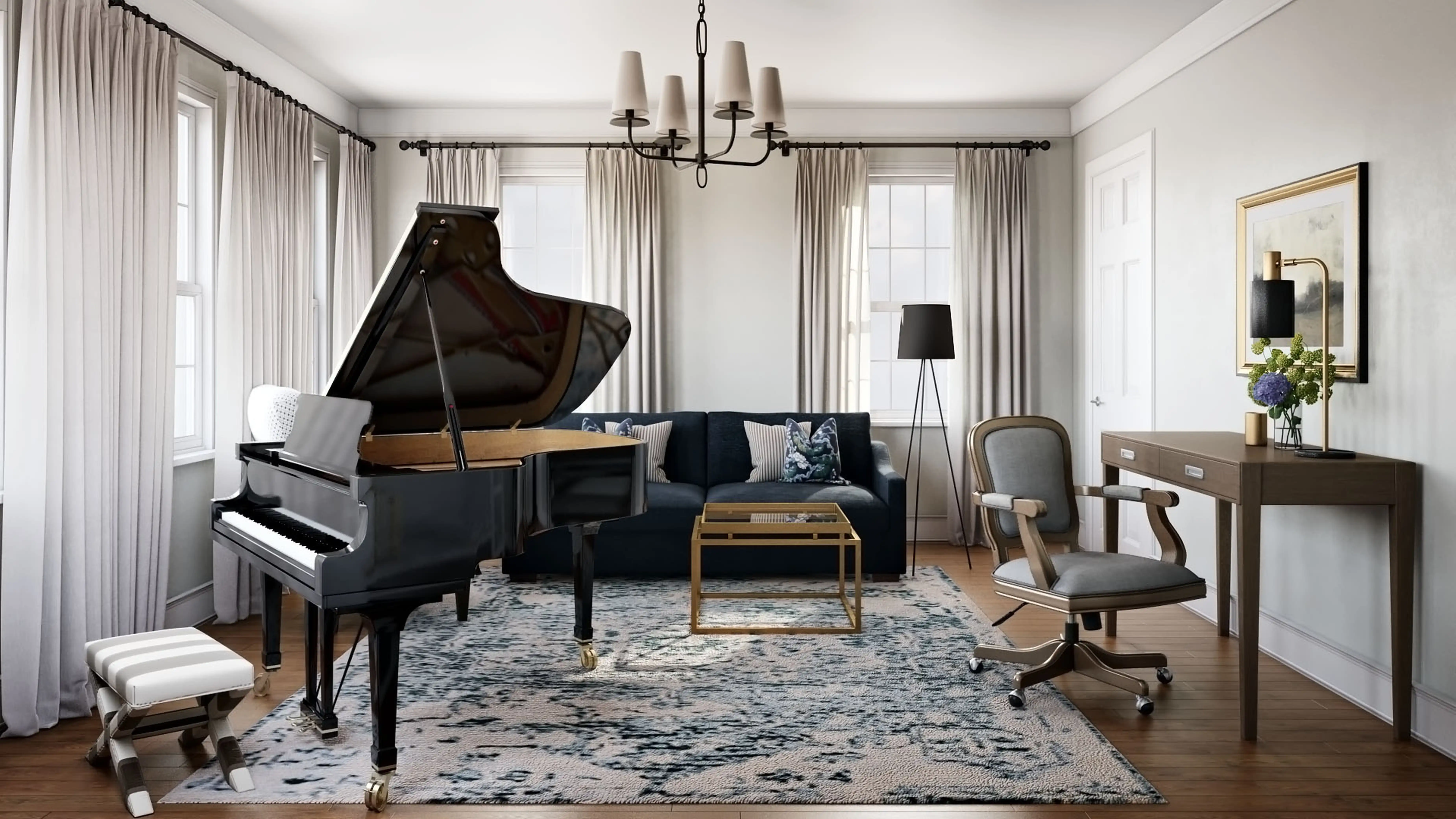 To brighten the design, Classic chandeliers and lamps were added to the room. Discover Lighting design inspiration on Havenly.