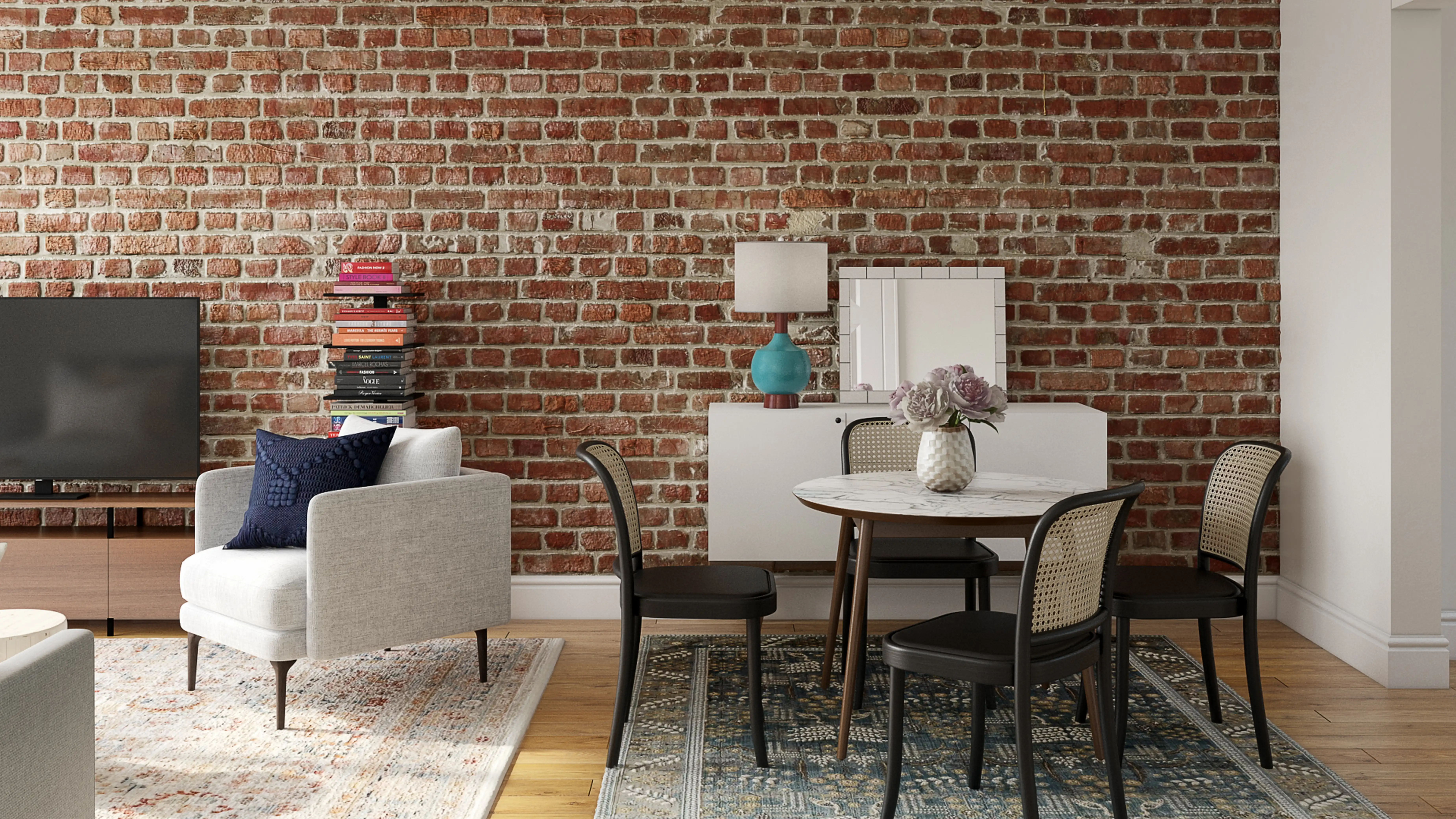 The rugs in this space from Loloi Rugs help add a variety of colors to the room. Discover Rug design inspiration on Havenly.
