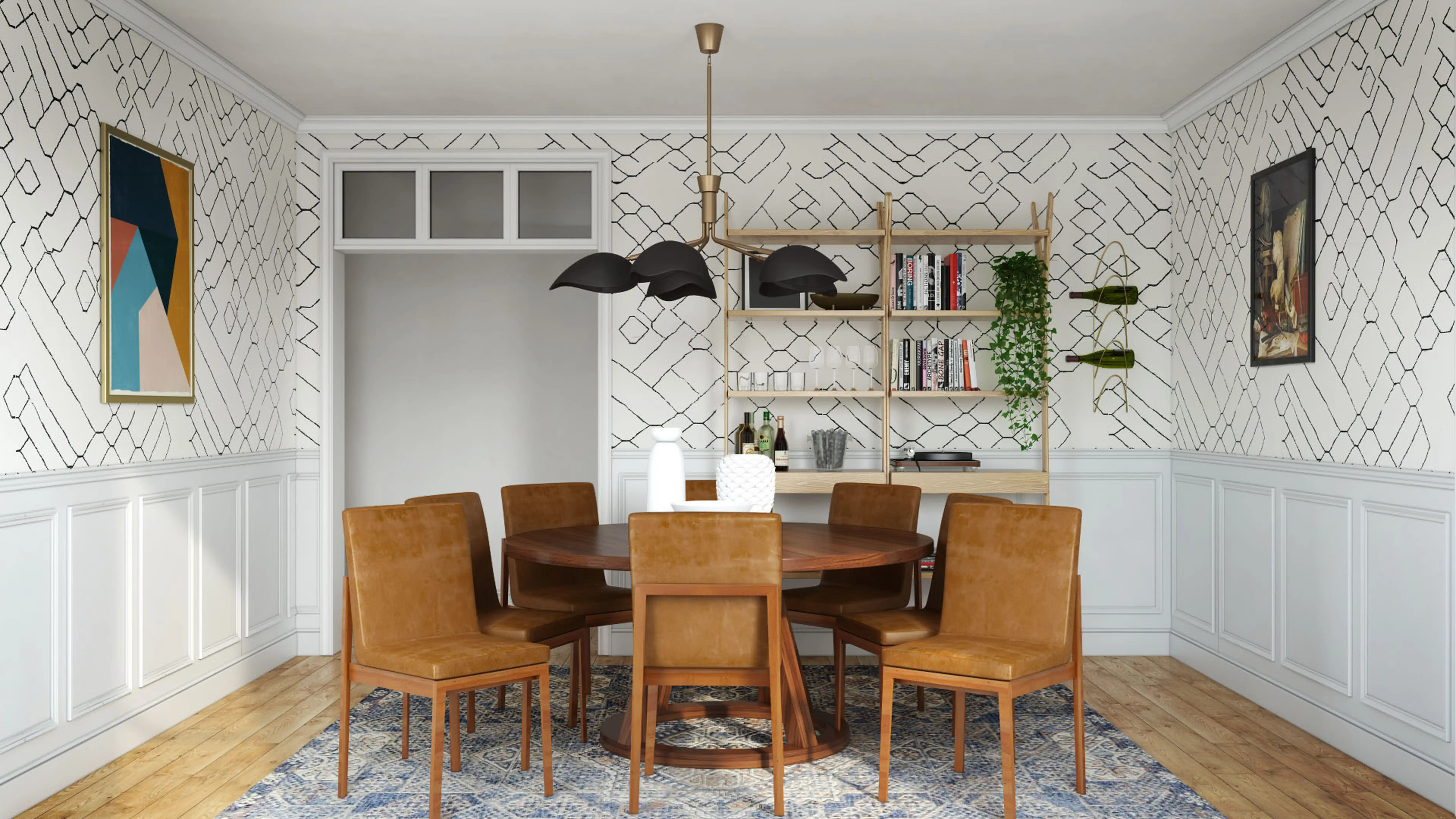 No room is complete without mirrors and wallpaper! Mixing up handpainted ebony, beige wood frame, and wallpaper with multi, black, and ivory helps to add the finishing touches to the room. Discover Decor & Pillow design inspiration on Havenly.