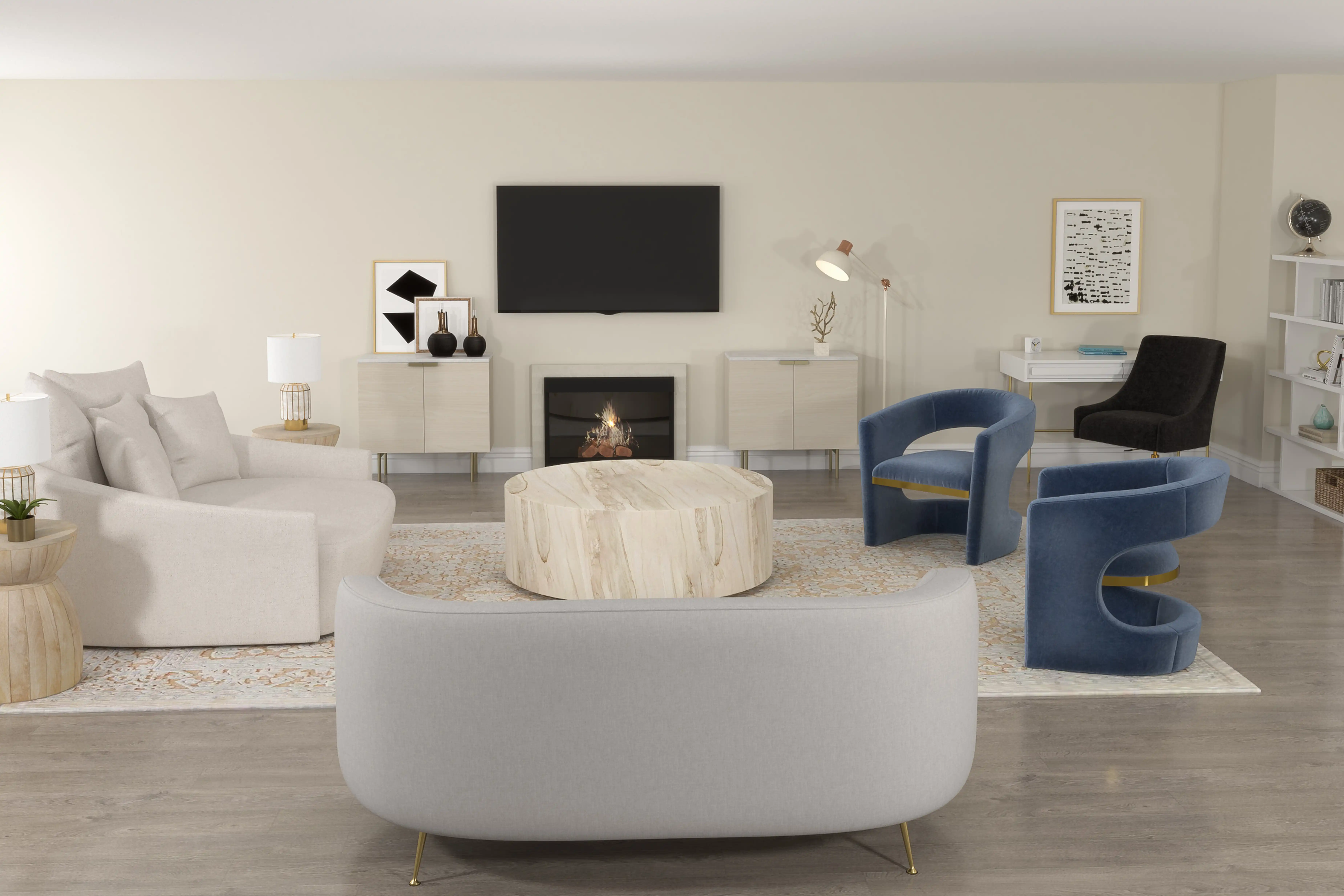 For this Living Room, Aleena selected bookcases, standing shelves, and end tables from CB2 and Anthropologie. Discover Furniture design inspiration on Havenly.