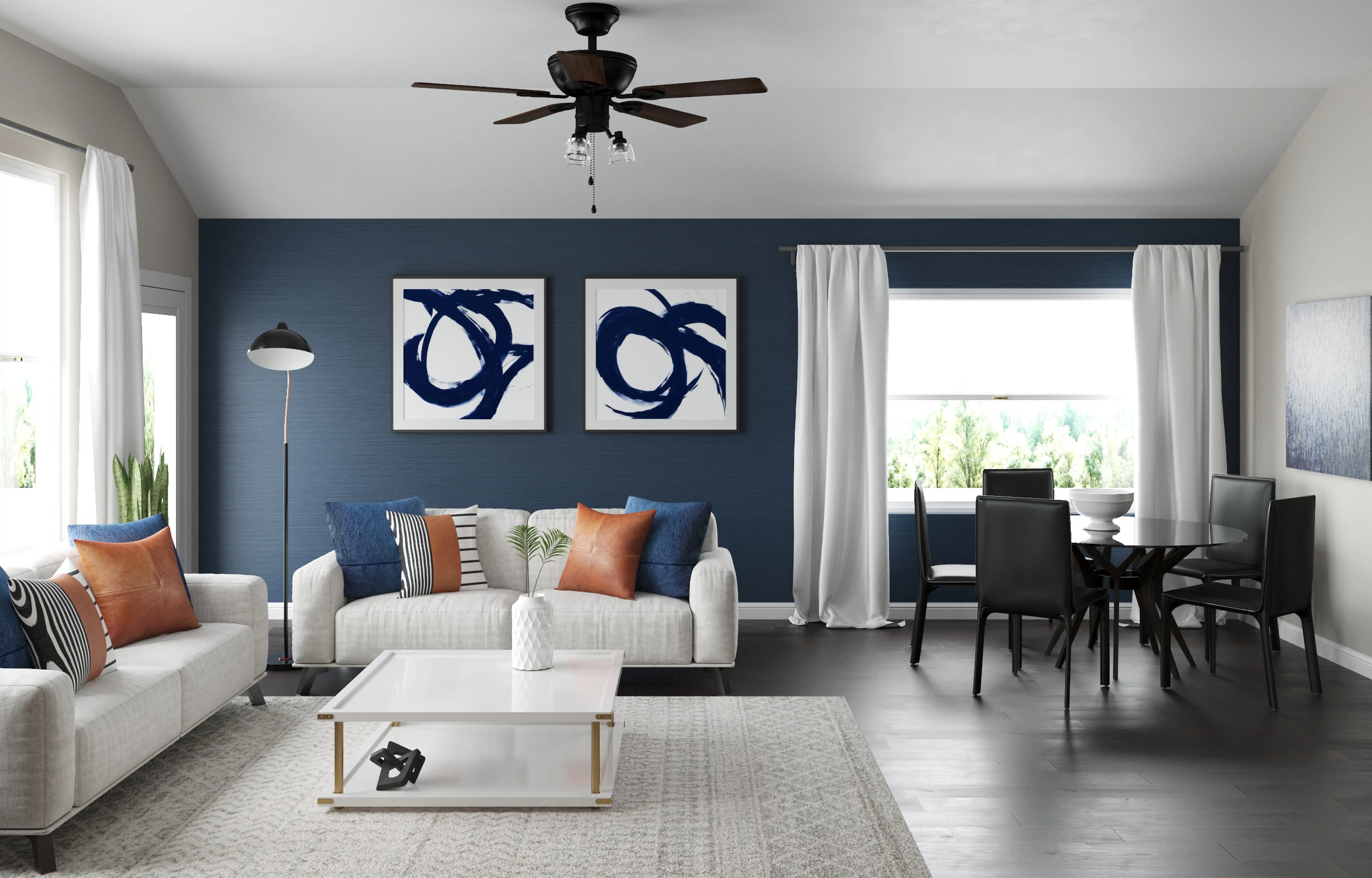 No room is complete without posters, prints, visual artwork, and plants! Mixing up canvas and live plant with blue and green helps to add the finishing touches to the room. Discover Decor & Pillow design inspiration on Havenly.