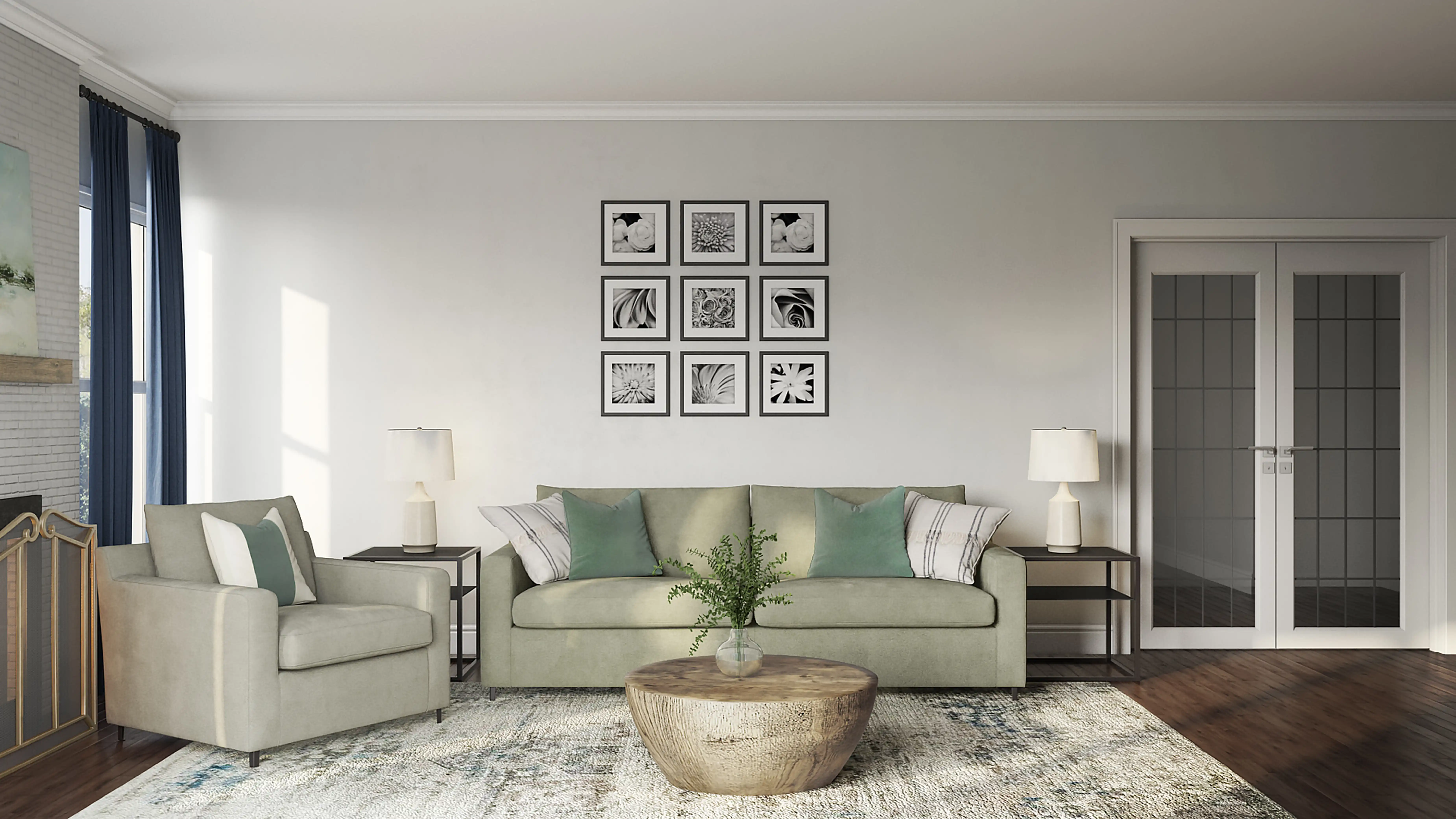 For this Living Room, Kylie selected sofas and ottomans from Crate, Barrel, and Target. Discover Furniture design inspiration on Havenly.