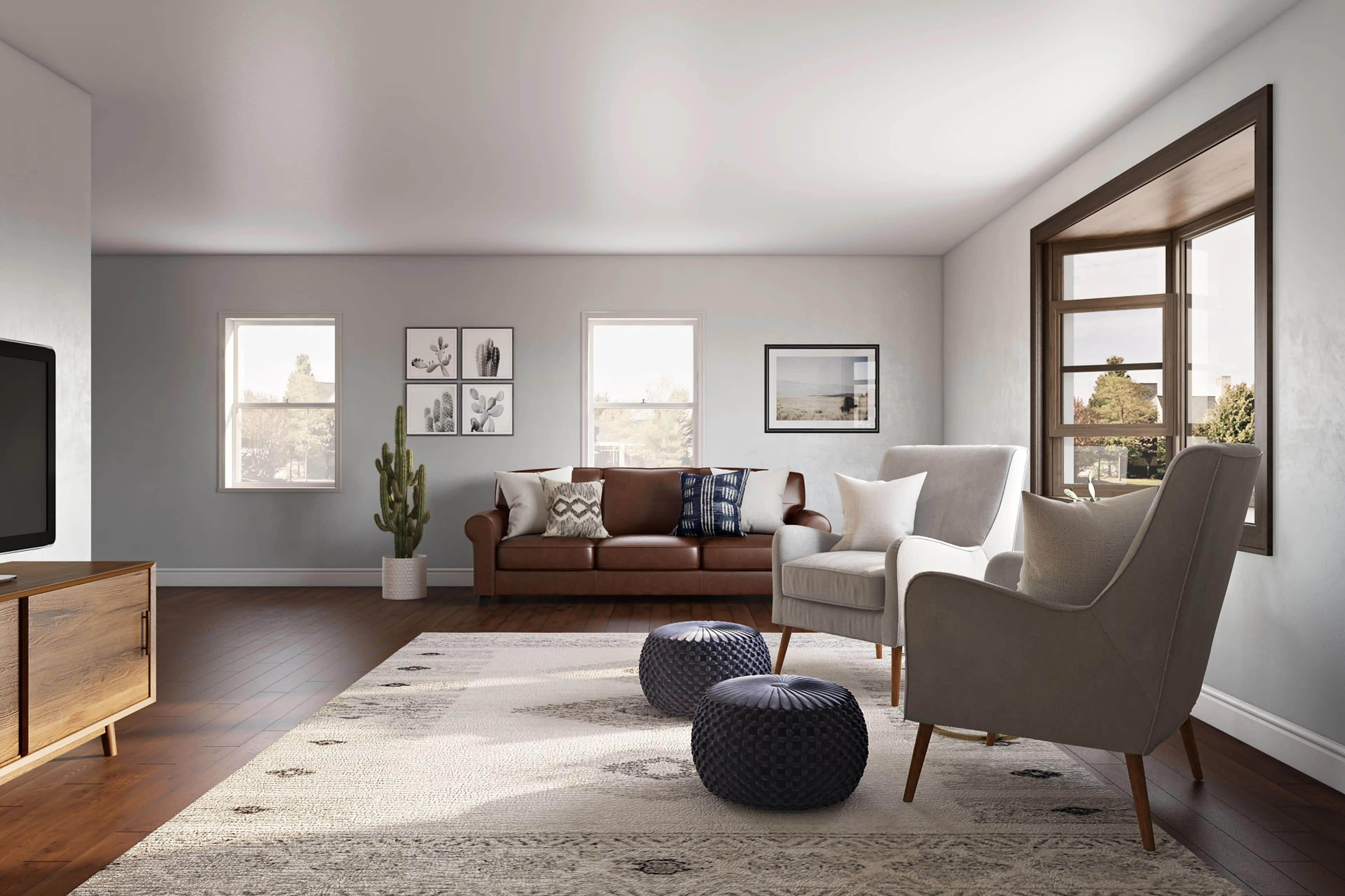 For this Living Room, Sara selected ottomans and accent tables from Target and AllModern. Discover Furniture design inspiration on Havenly.