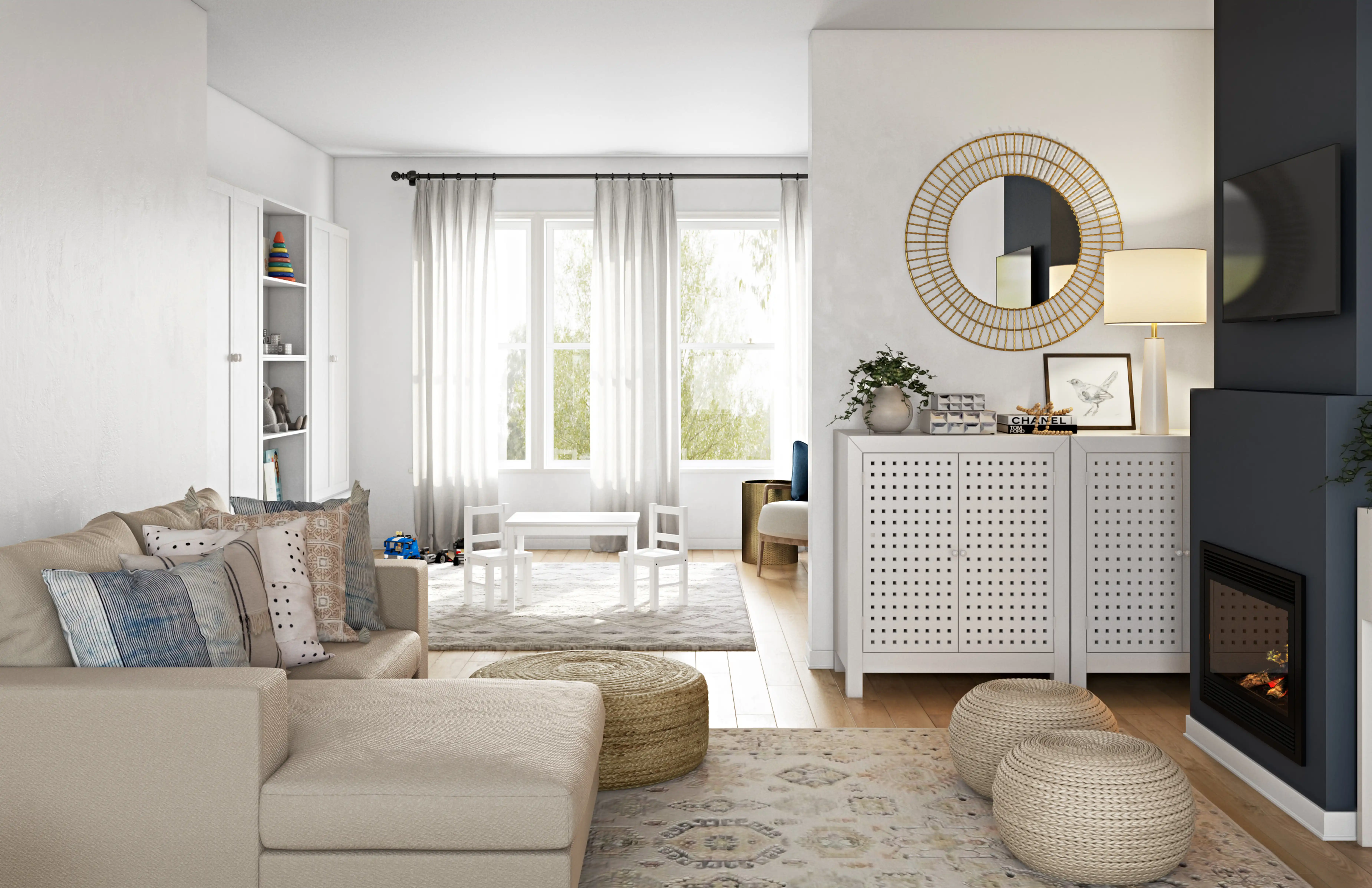 For this room, Sarah selected poufs and nightstands from CB2 and Wayfair. Discover Furniture design inspiration on Havenly.