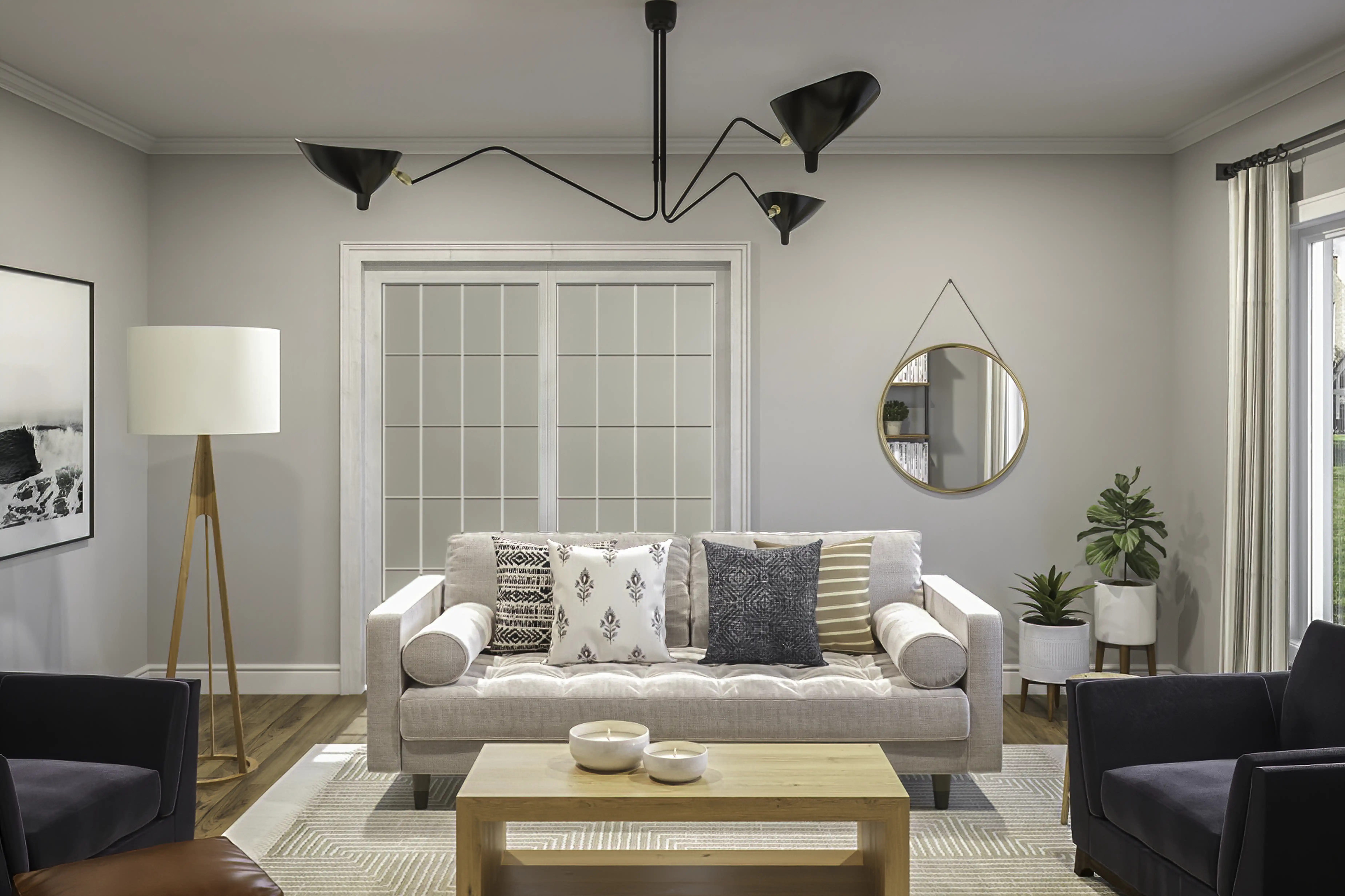 For this Living Room, Jamie selected poufs and sofas from CB2 and Article. Discover Furniture design inspiration on Havenly.