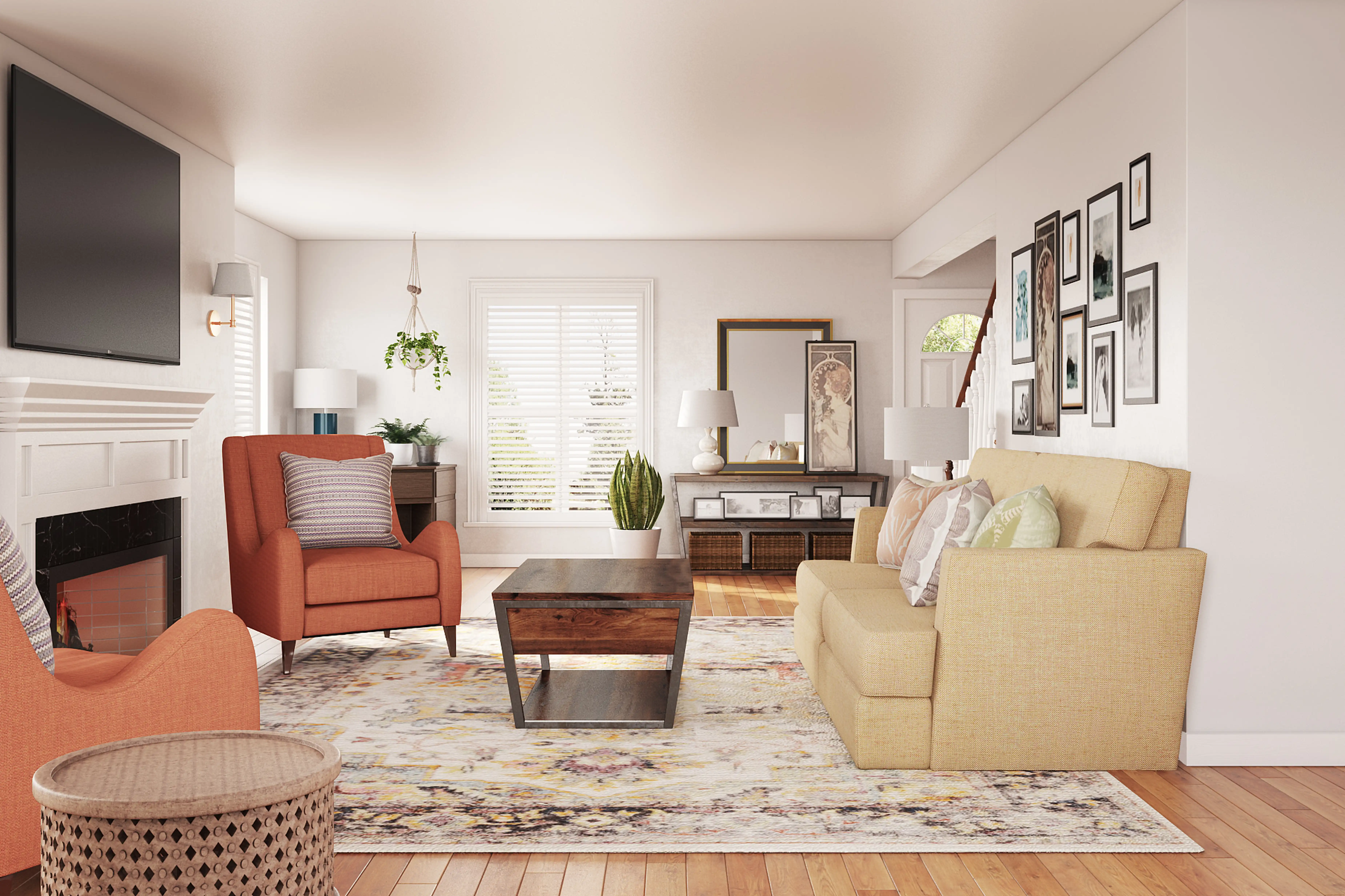 The rugs in this space from Wayfair and Loloi Rugs help add a variety of colors to the room. Discover Rug design inspiration on Havenly.