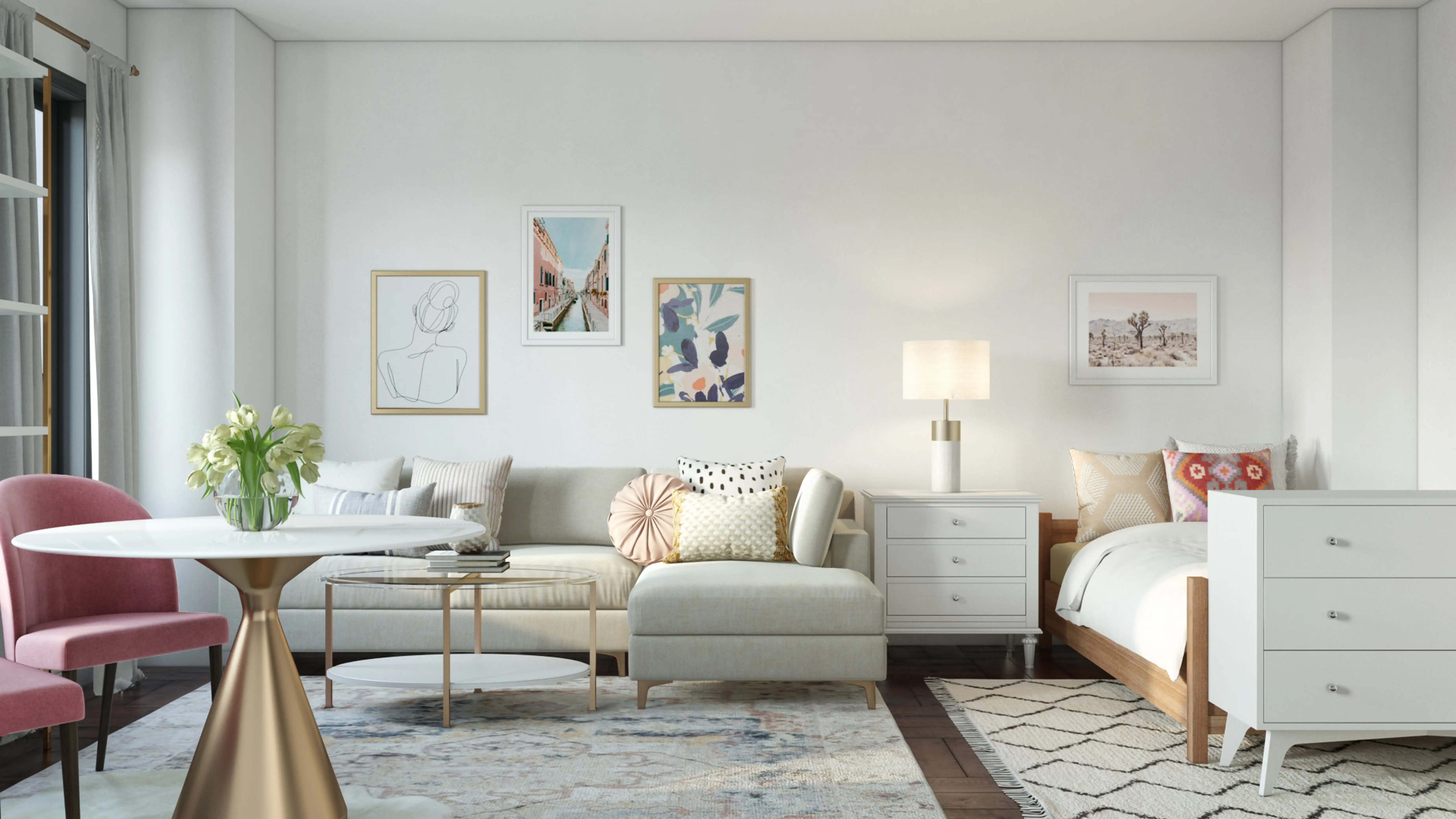 To brighten the design, Eclectic lamps and ceiling light fixtures were added to the room. Discover Lighting design inspiration on Havenly.