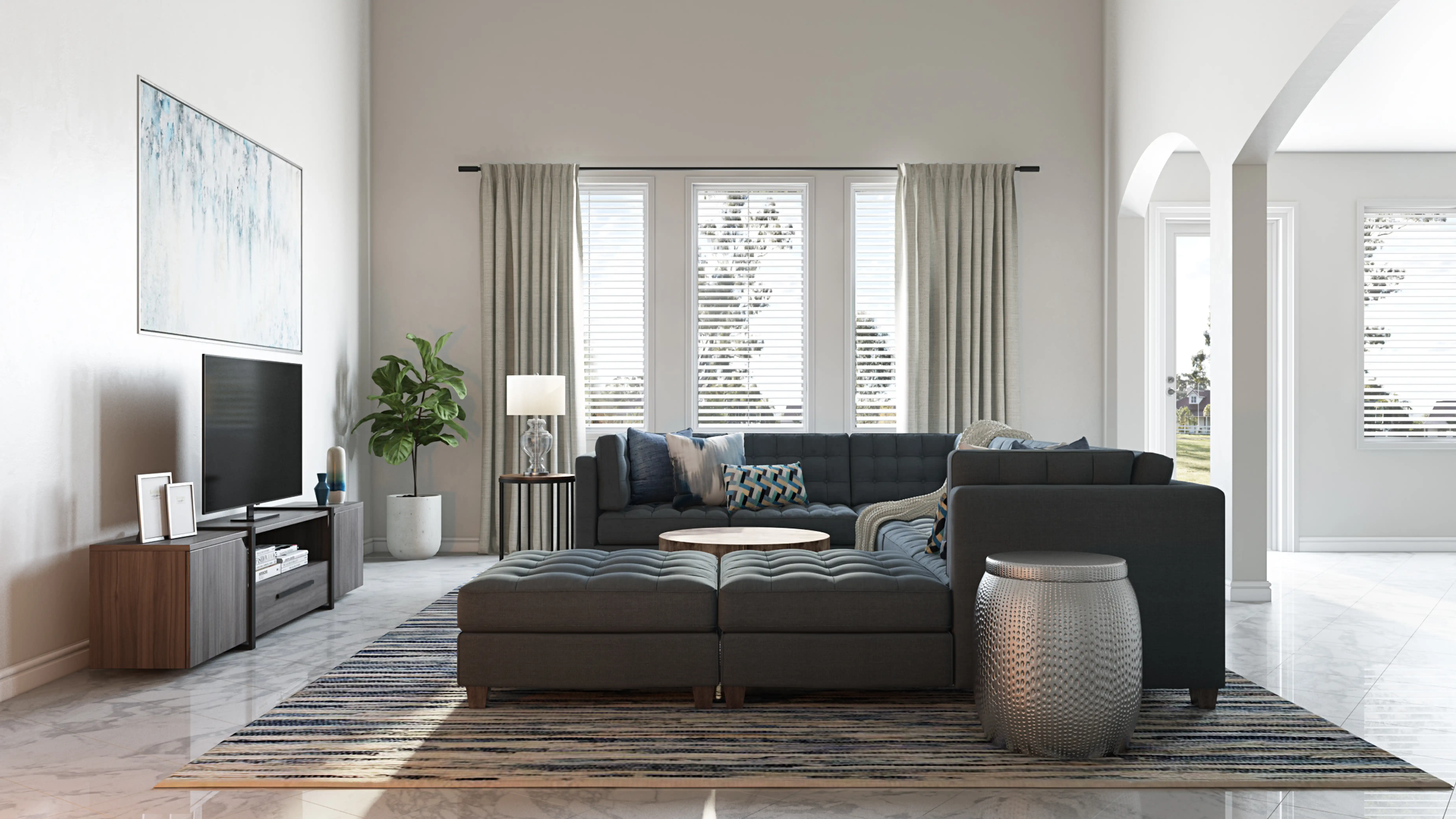 The rugs in this space from Wayfair and AllModern help add a variety of colors to the room. Discover Rug design inspiration on Havenly.