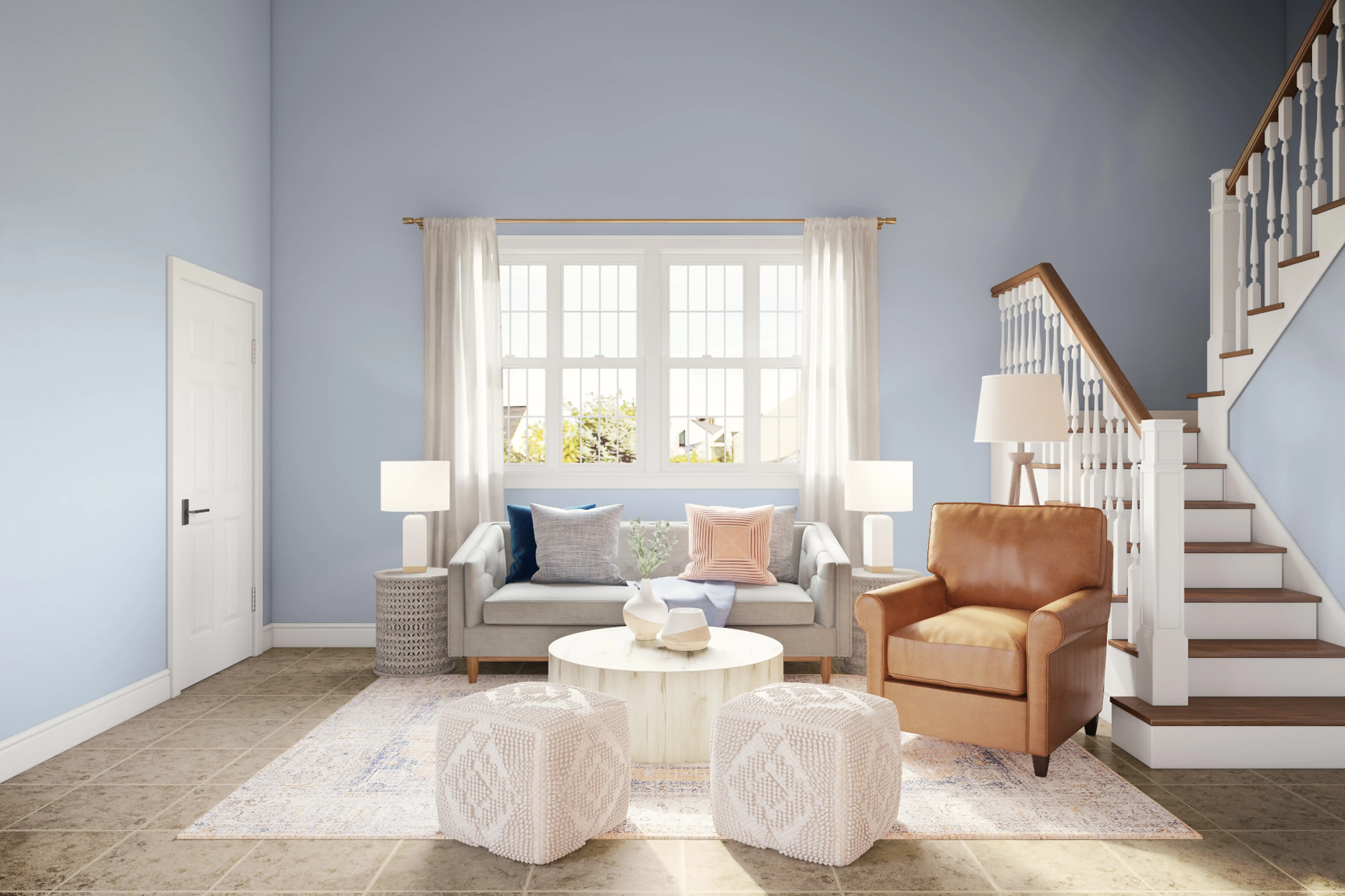 For this Living Room, Ghianella selected end tables and poufs from Lamps Plus and Roam Common. Discover Furniture design inspiration on Havenly.