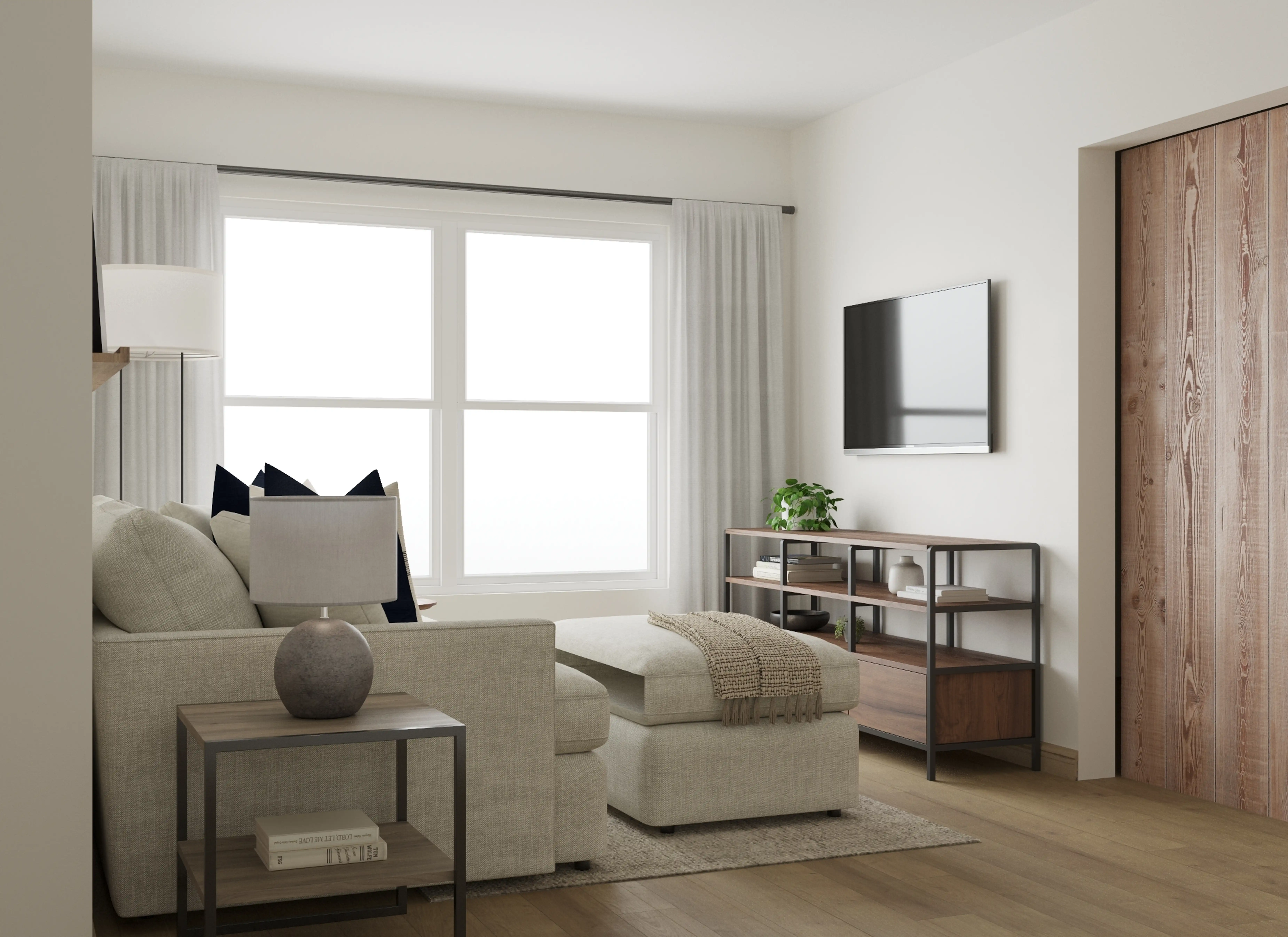 For this Living Room, Jodi selected wall shelves, ledges, and end tables from Pottery Barn and Wayfair. Discover Furniture design inspiration on Havenly.