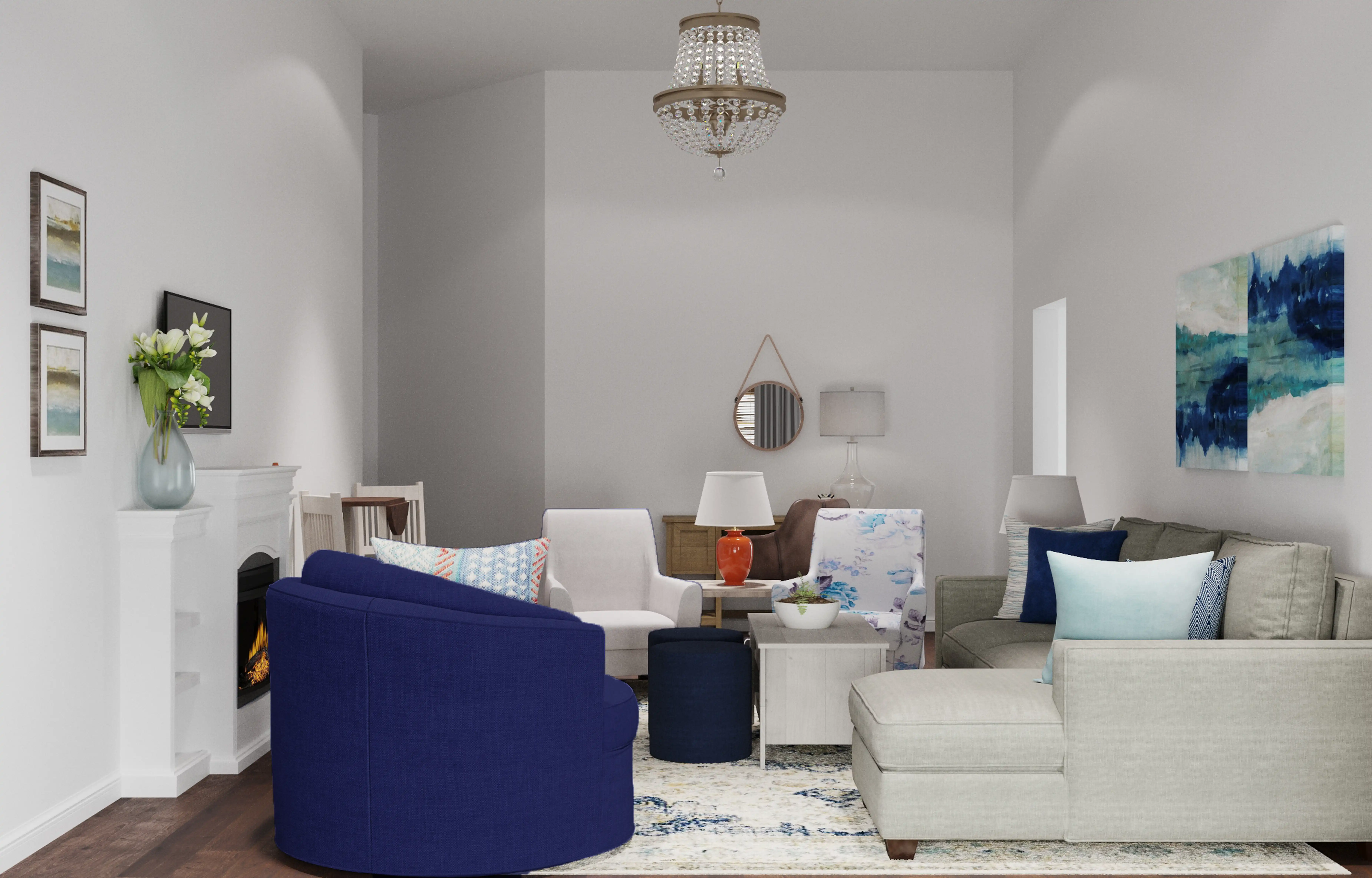 To brighten the design, Contemporary lamps and chandeliers were added to the room. Discover Lighting design inspiration on Havenly.