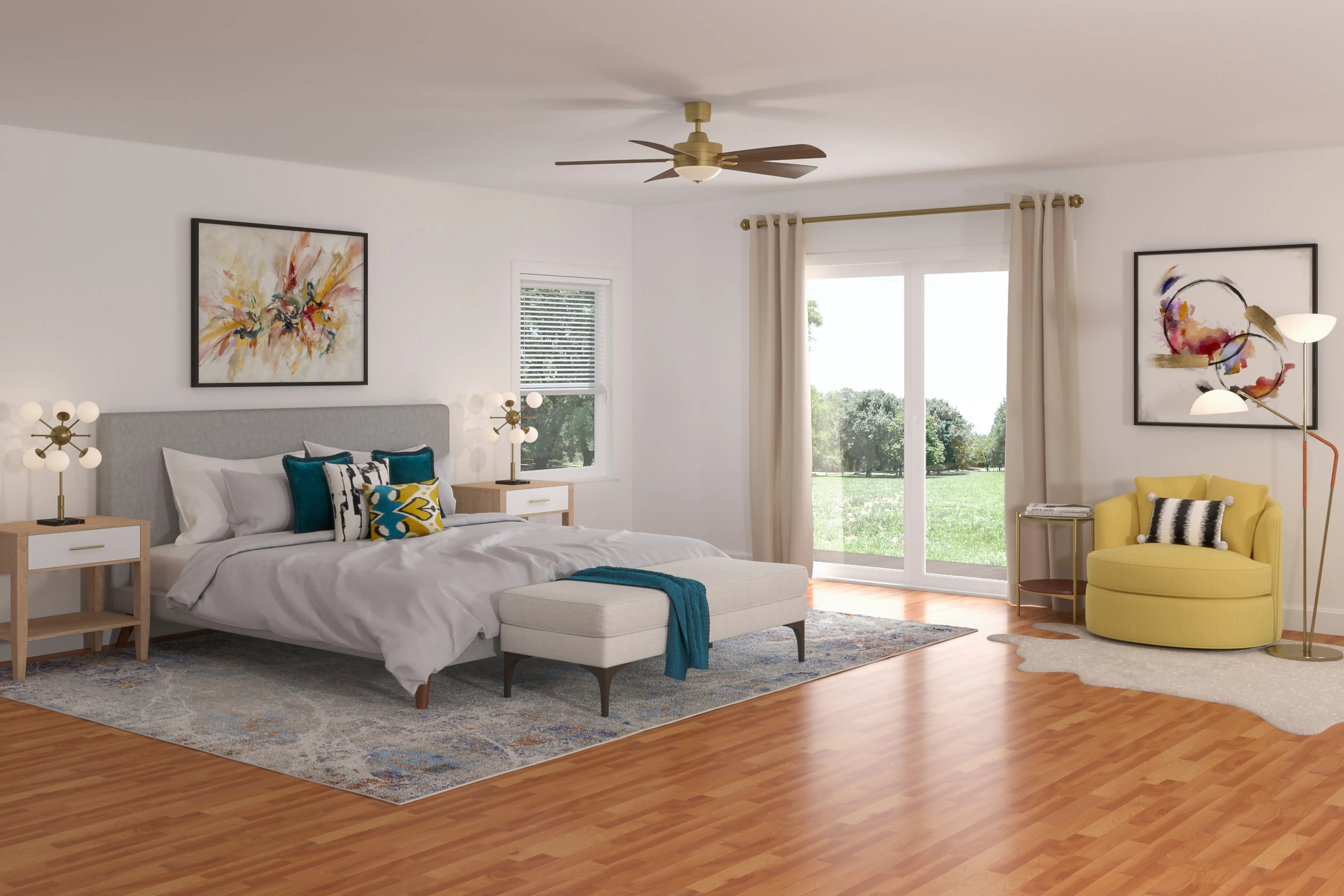 No room is complete without blankets, pillowcases, and shams! Mixing up acrylic and silk with teal and yellow helps to add the finishing touches to the Bedroom. Discover Decor & Pillow design inspiration on Havenly.