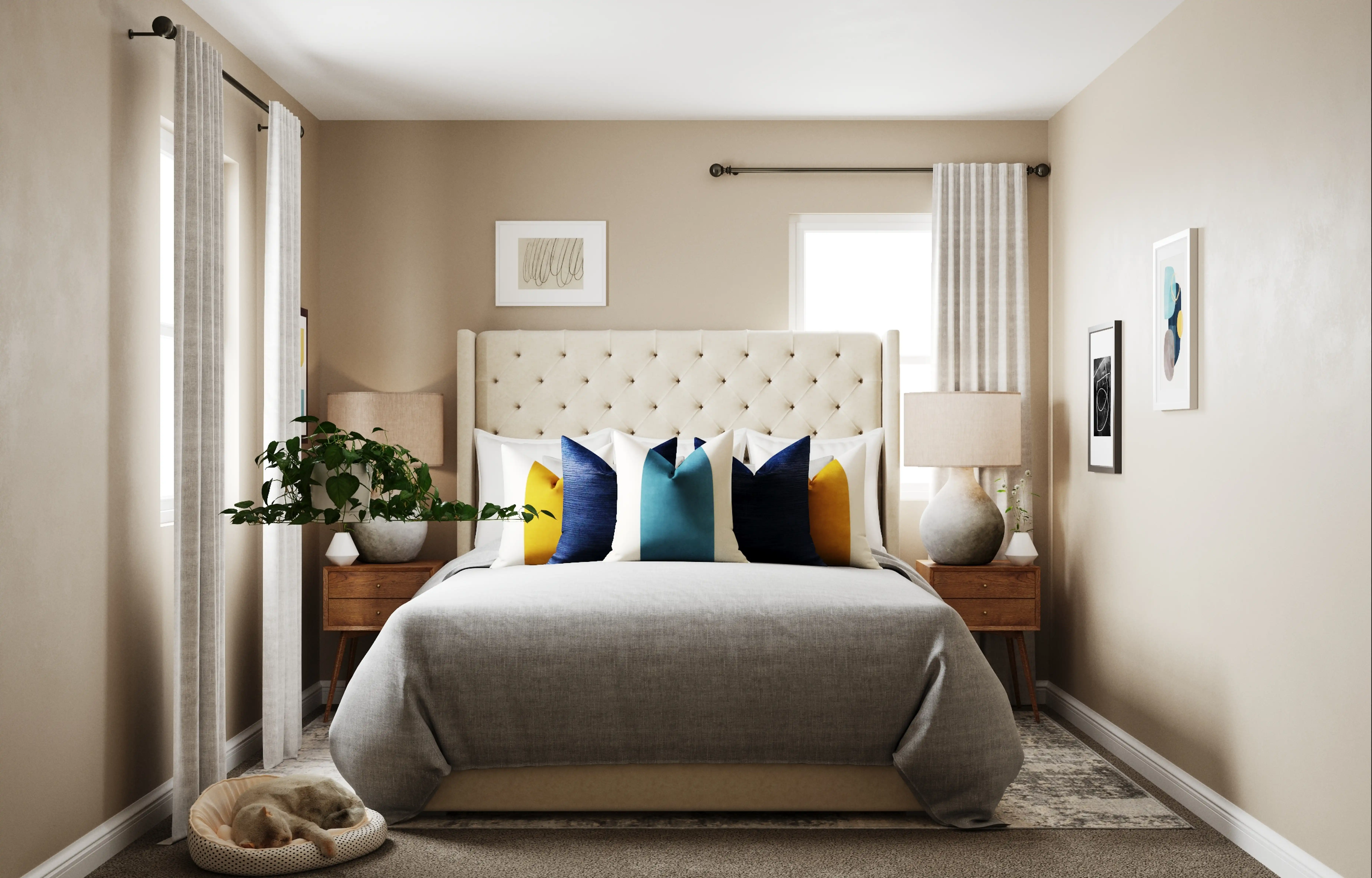 No room is complete without pillowcases, shams, and throw pillows! Mixing up linen and velvet with flagstone and gray helps to add the finishing touches to the Bedroom. Discover Decor & Pillow design inspiration on Havenly.