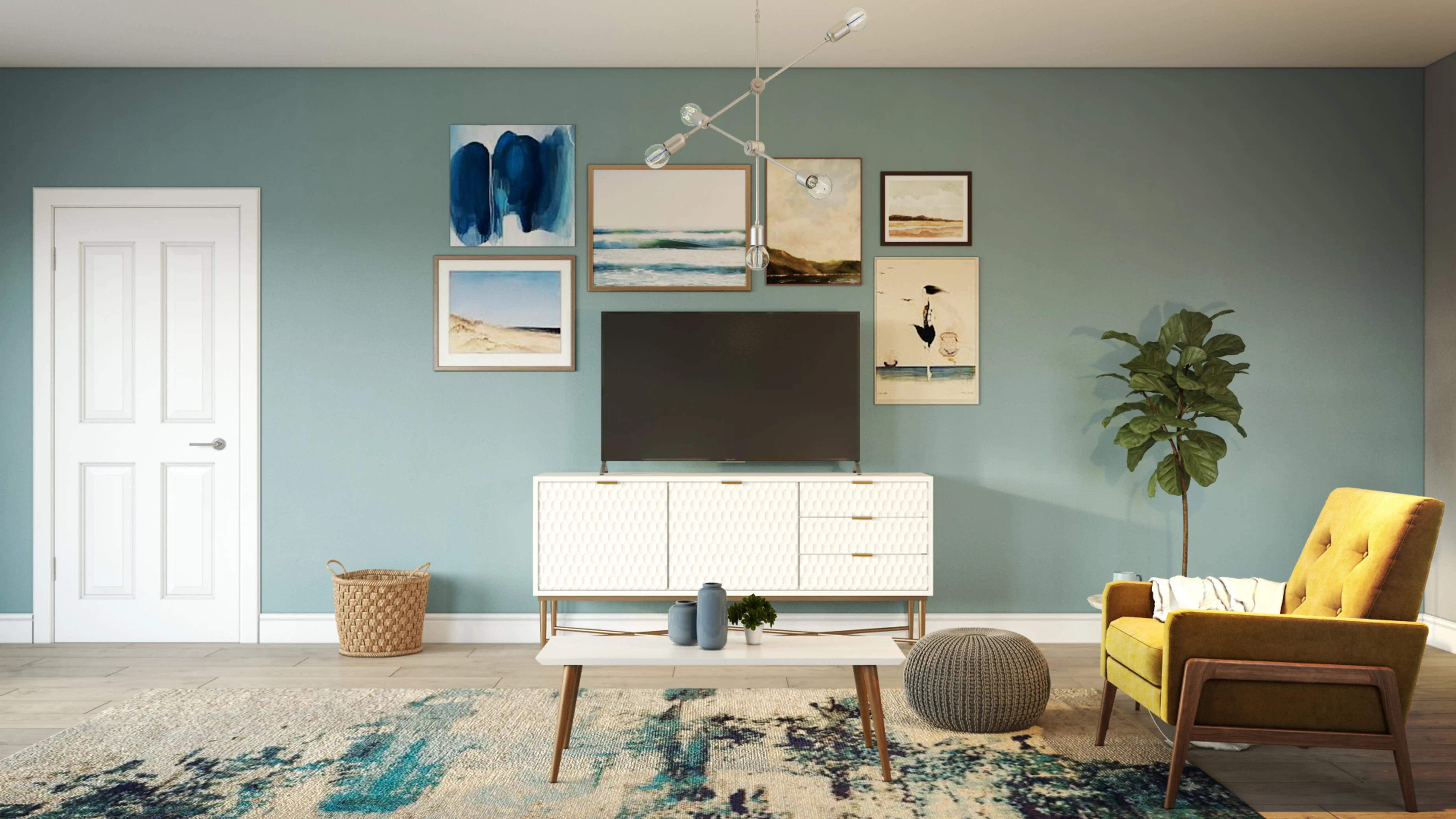 For this Living Room, Taylor selected media storage cabinets, racks, and coffee tables from AllModern and West Elm. Discover Furniture design inspiration on Havenly.