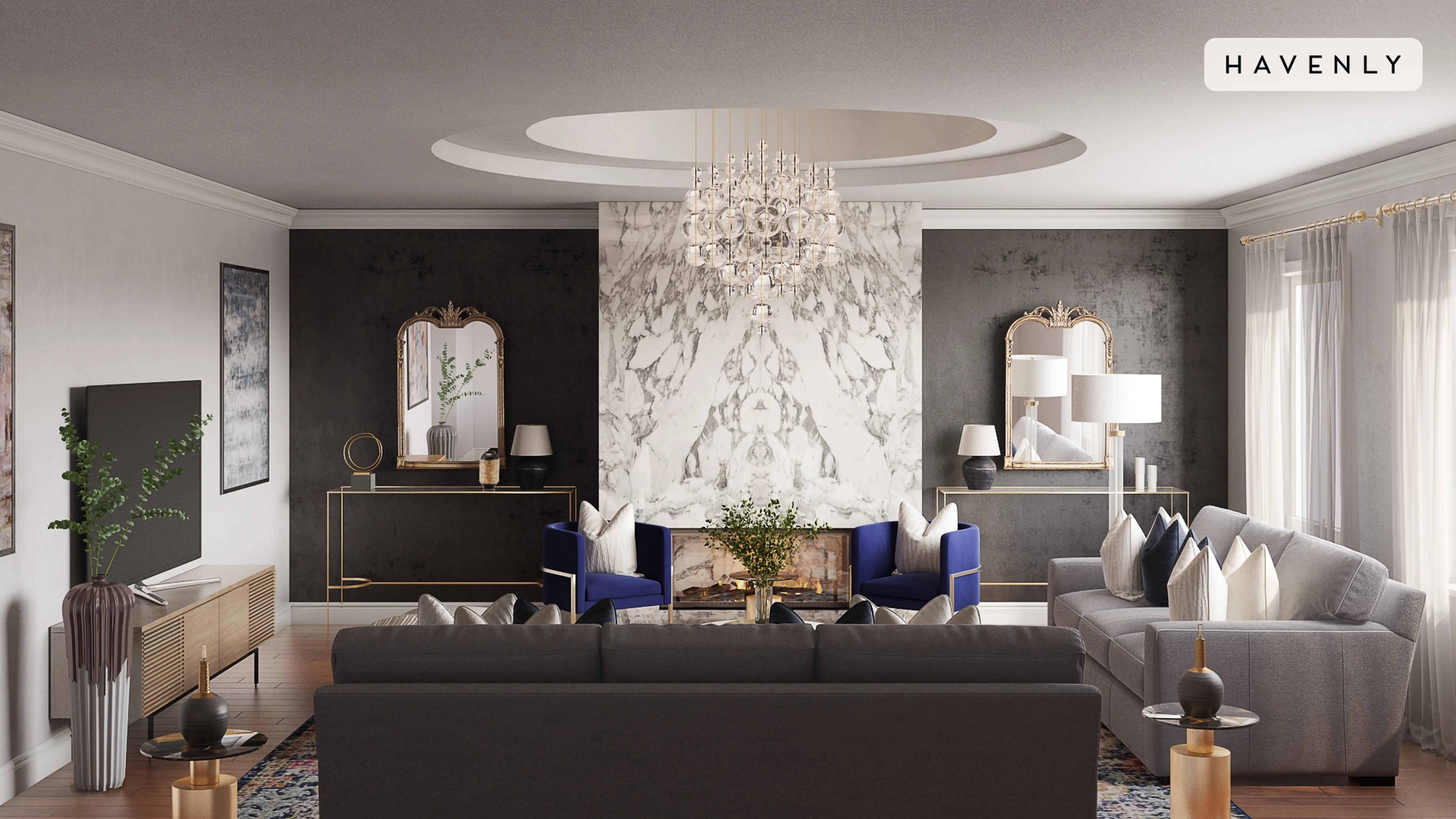 For this Living Room, Areeba selected sofas and benches from Wayfair and West Elm. Discover Furniture design inspiration on Havenly.