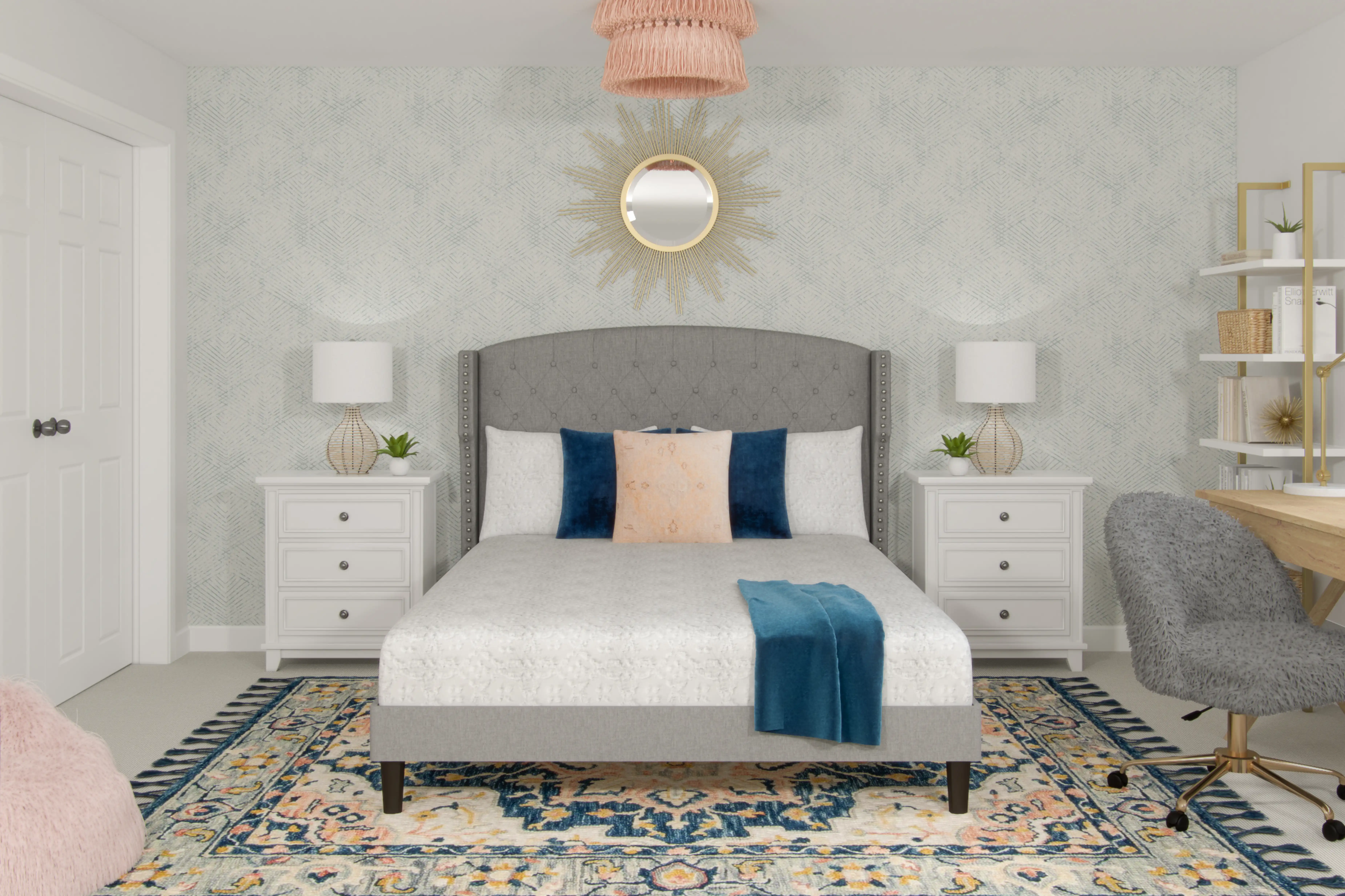 For this Bedroom, Kaity selected poufs, bookcases, and standing shelves from RH Teen and Home Depot. Discover Furniture design inspiration on Havenly.