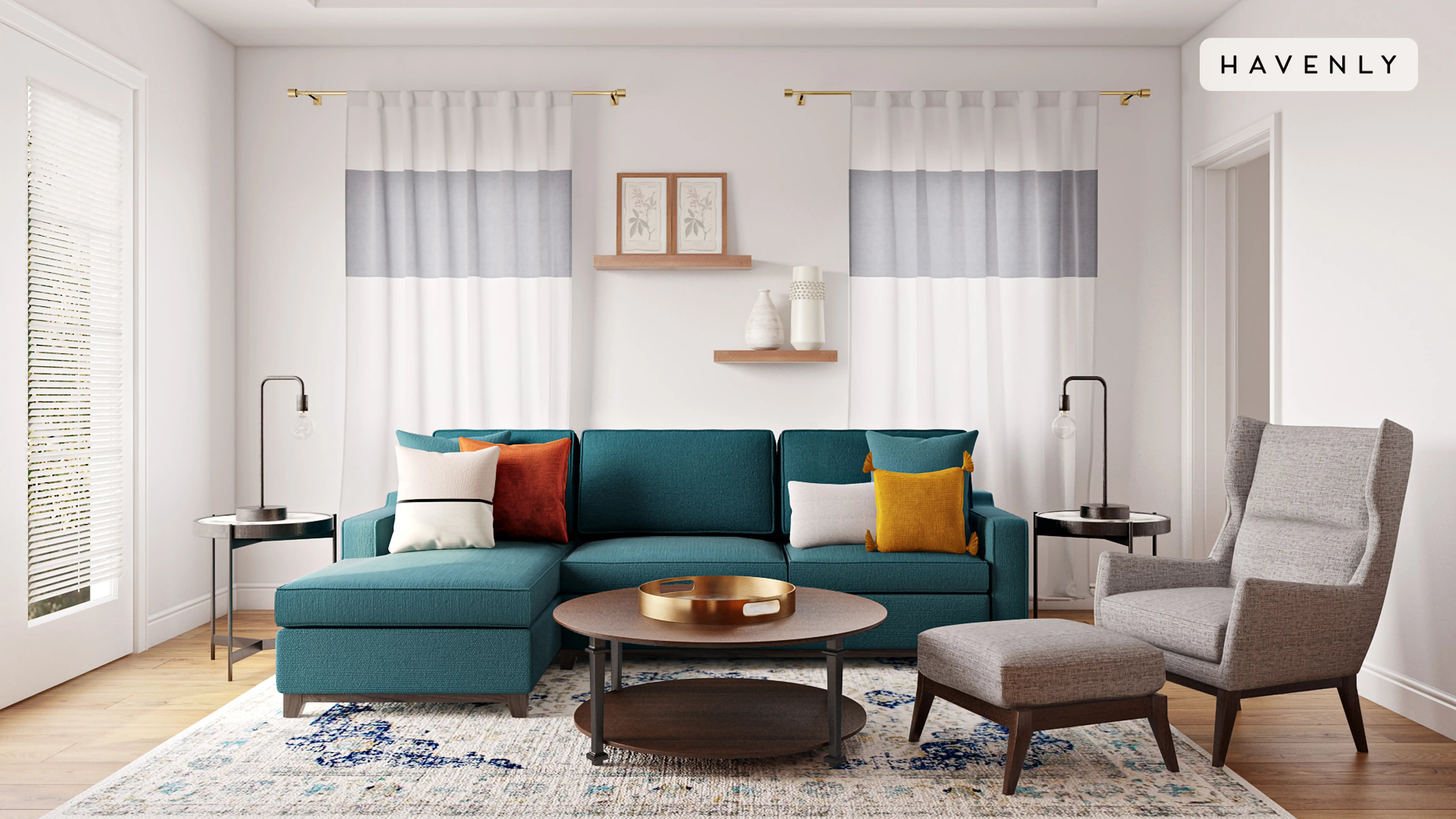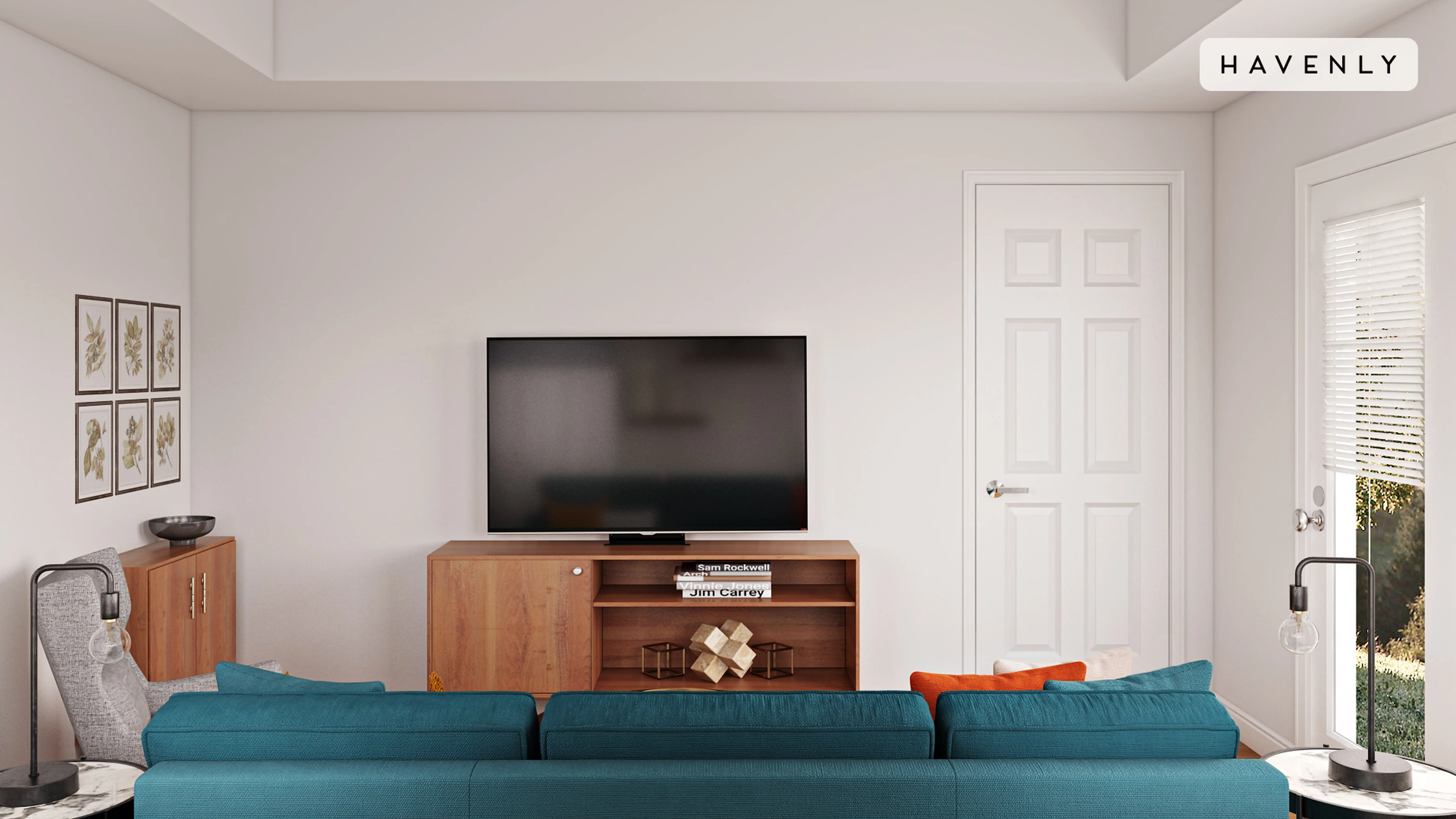For this Living Room, Brinker selected coffee tables, entertainment centers, and tv stands from Ballard Designs and Wayfair. Discover Furniture design inspiration on Havenly.