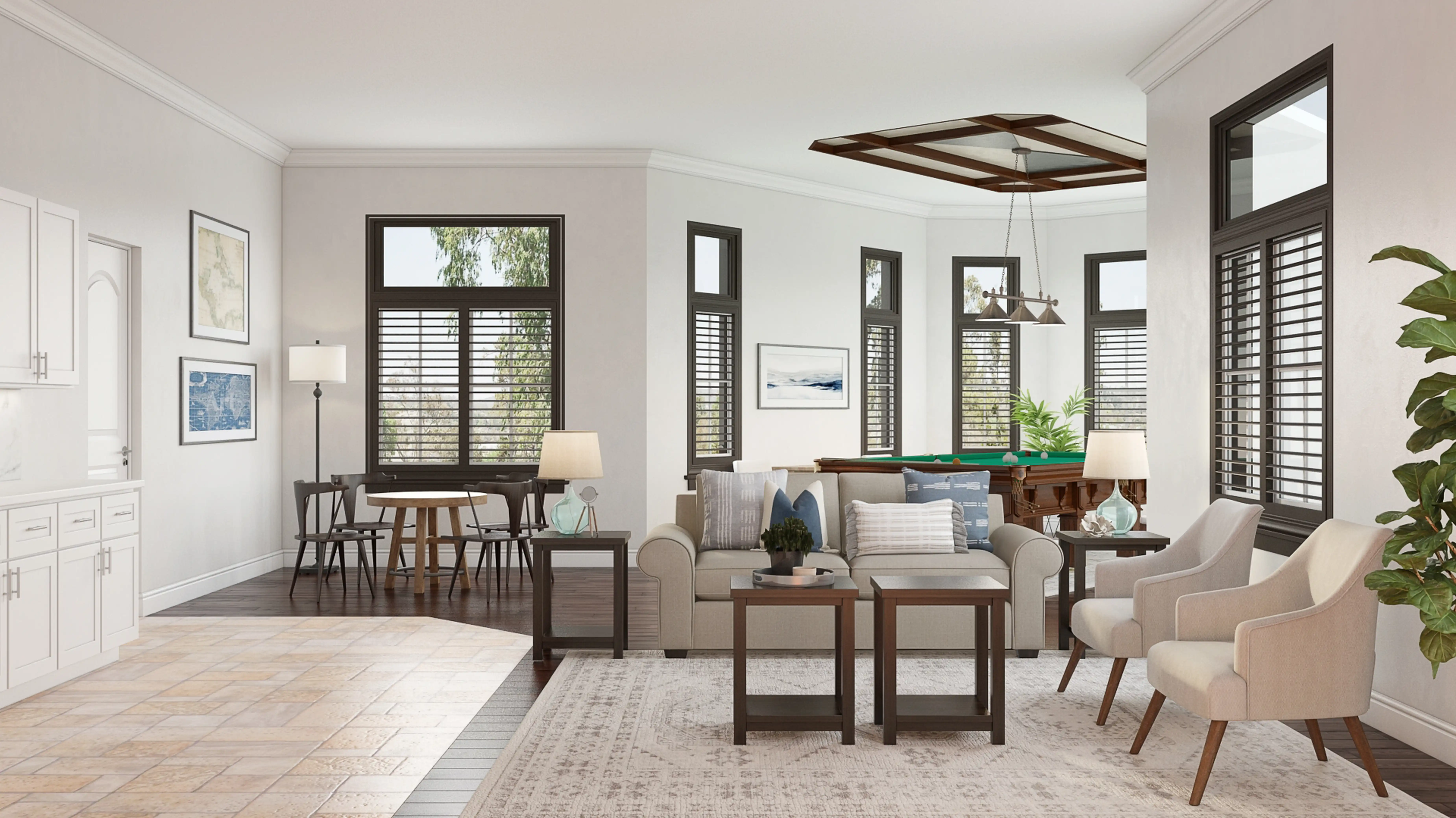 For this Living Room, Melissa selected arm chairs, recliners, sleeper chairs, table, and bar stools from Uttermost and Pottery Barn. Discover Furniture design inspiration on Havenly.