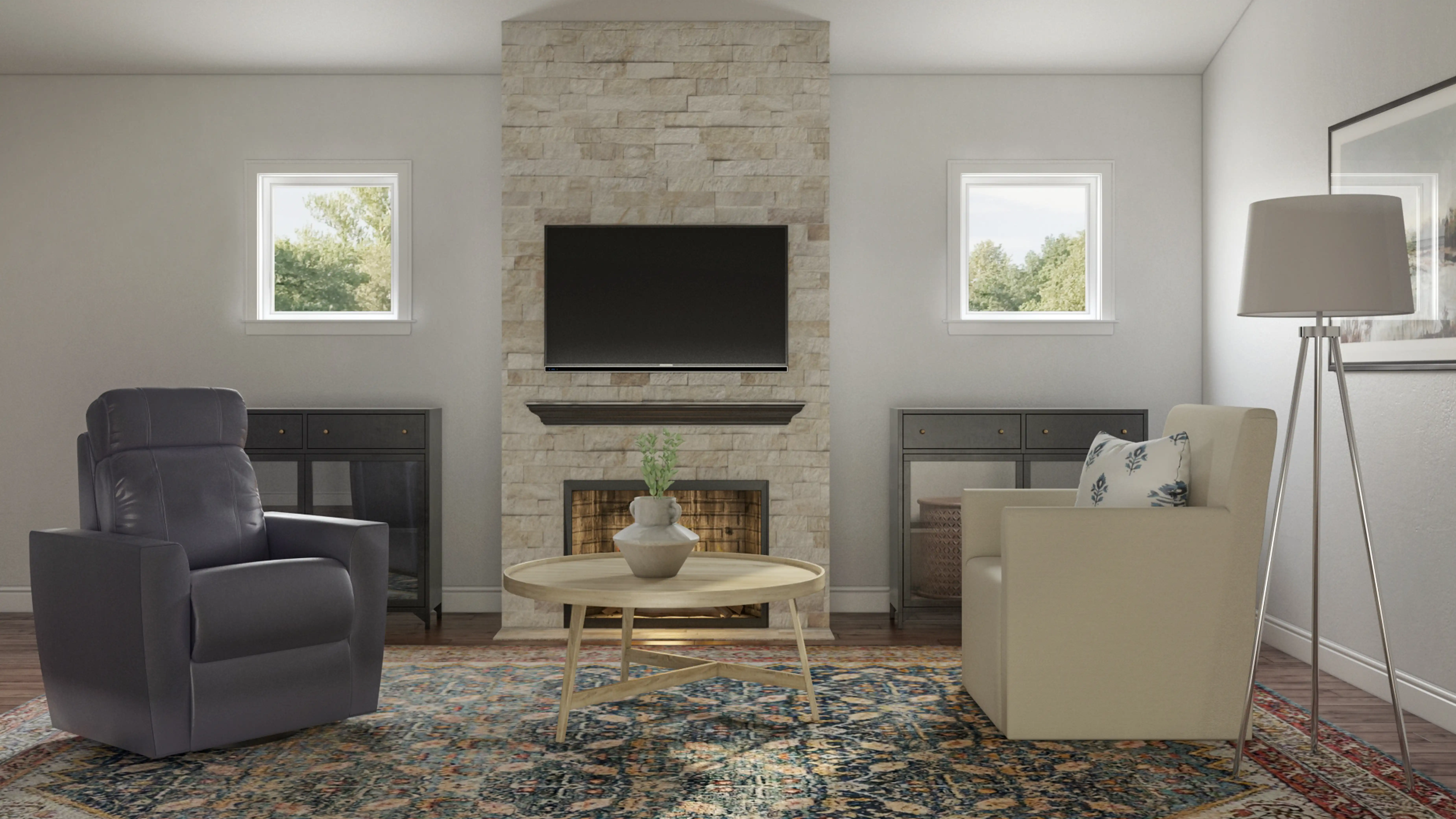 The rugs in this space from Loloi Rugs help add a variety of colors to the room. Discover Rug design inspiration on Havenly.