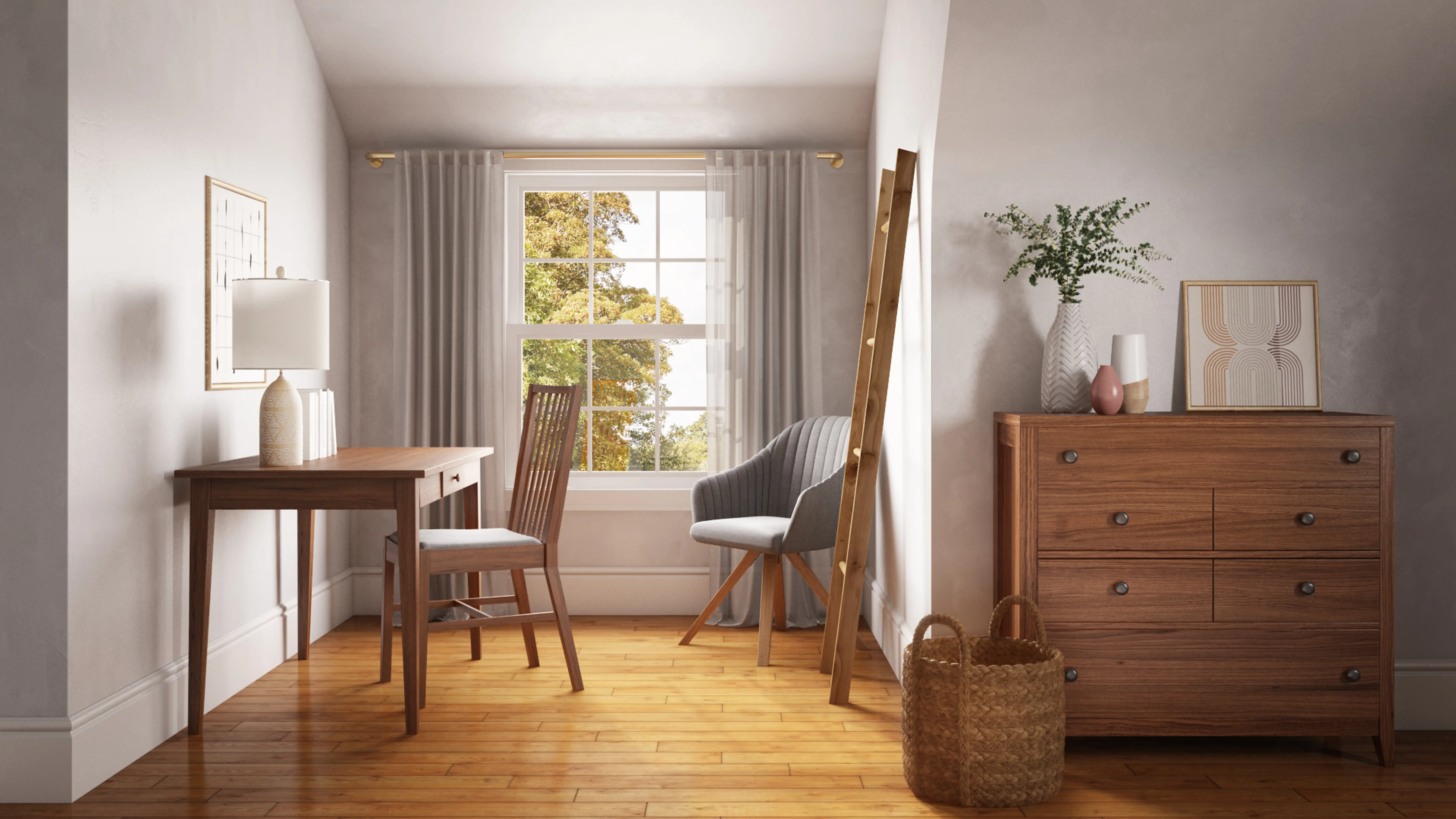 For this Bedroom, Julie selected beds, bed frames, and desks from Lark Interiors and Wayfair. Discover Furniture design inspiration on Havenly.