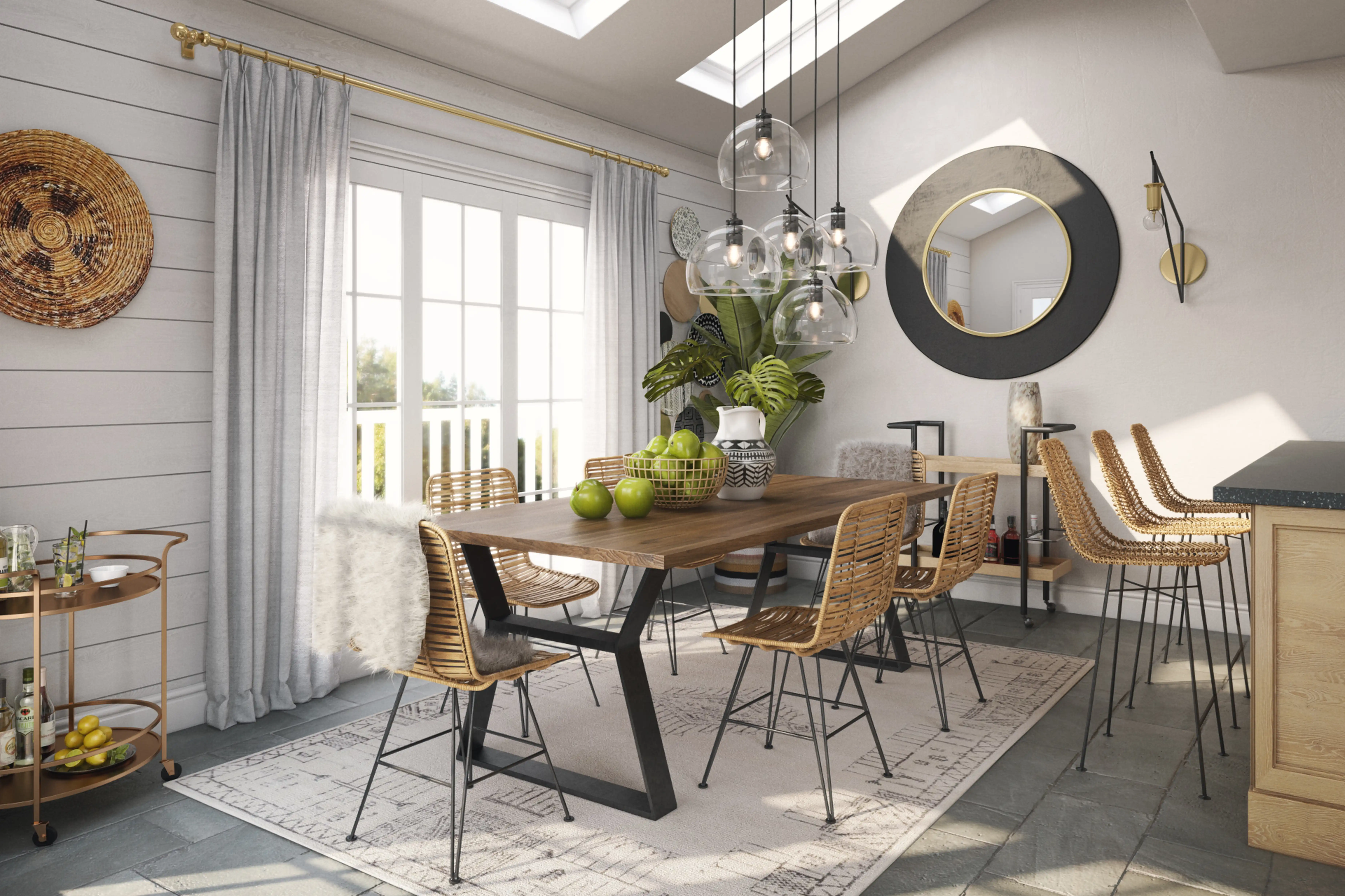 No room is complete without mirrors and baskets! Mixing up wood and seagrass with gold, gray, brown, and tan helps to add the finishing touches to the Dining Room. Discover Decor & Pillow design inspiration on Havenly.