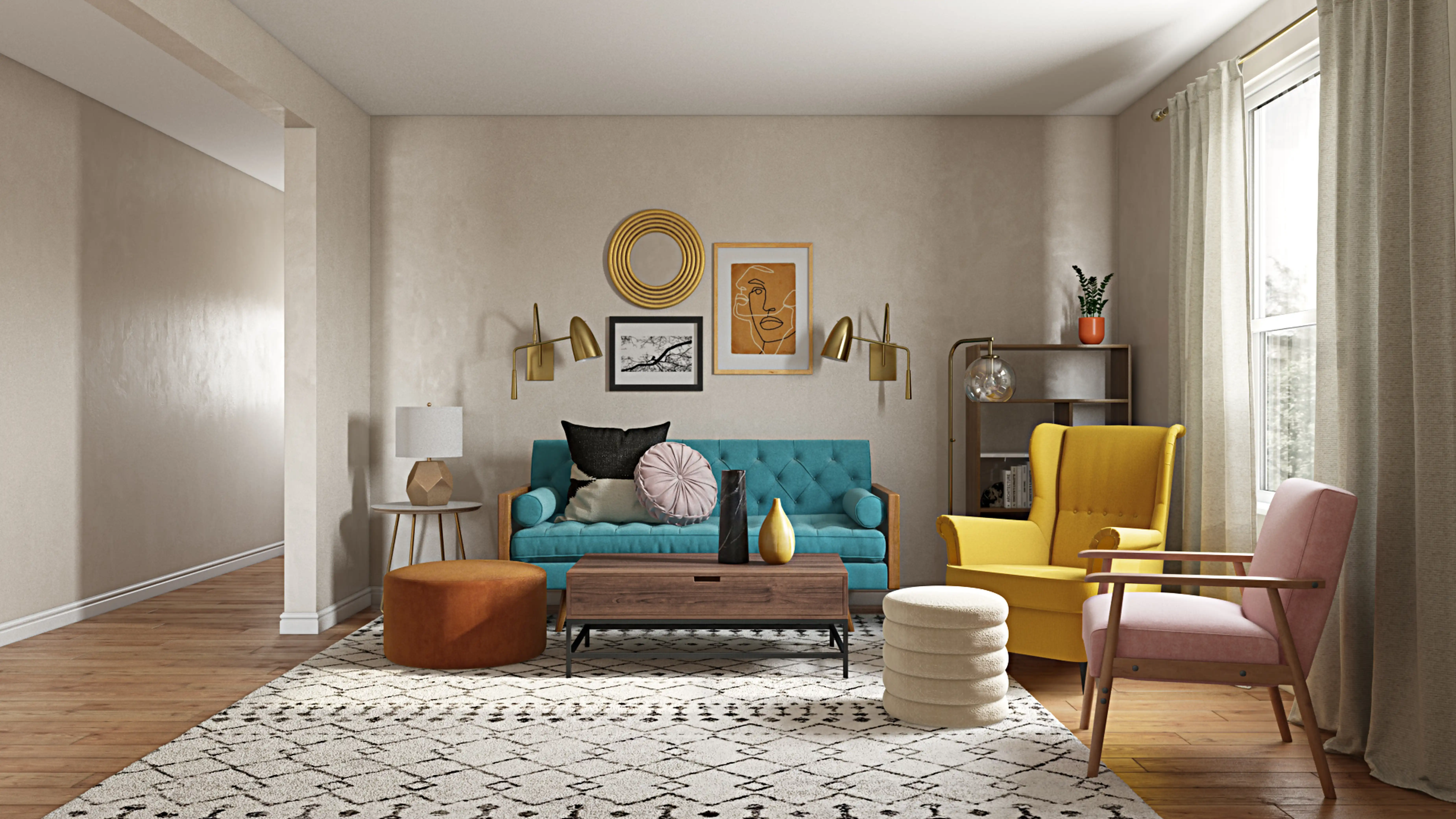 To brighten the design, Midcentury Modern lamps and wall light fixtures were added to the room. Discover Lighting design inspiration on Havenly.